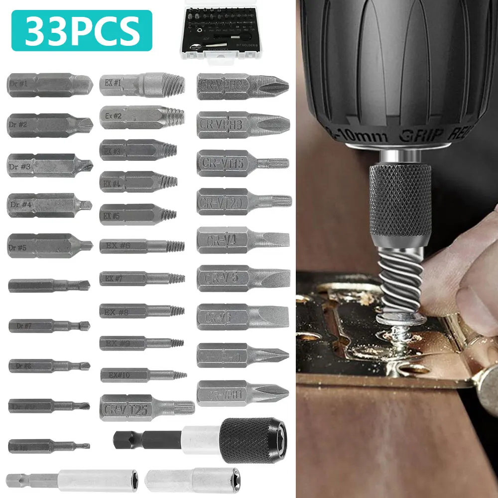 Экстрактор поврежденных винтов 33 в 1, универсальное, простое удаление поврежденных болтов с переходником для розетки