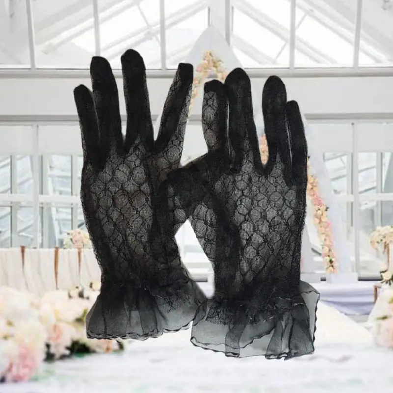 Кружевные перчатки из сетчатой пряжи, перчатки до запястья, коротки...