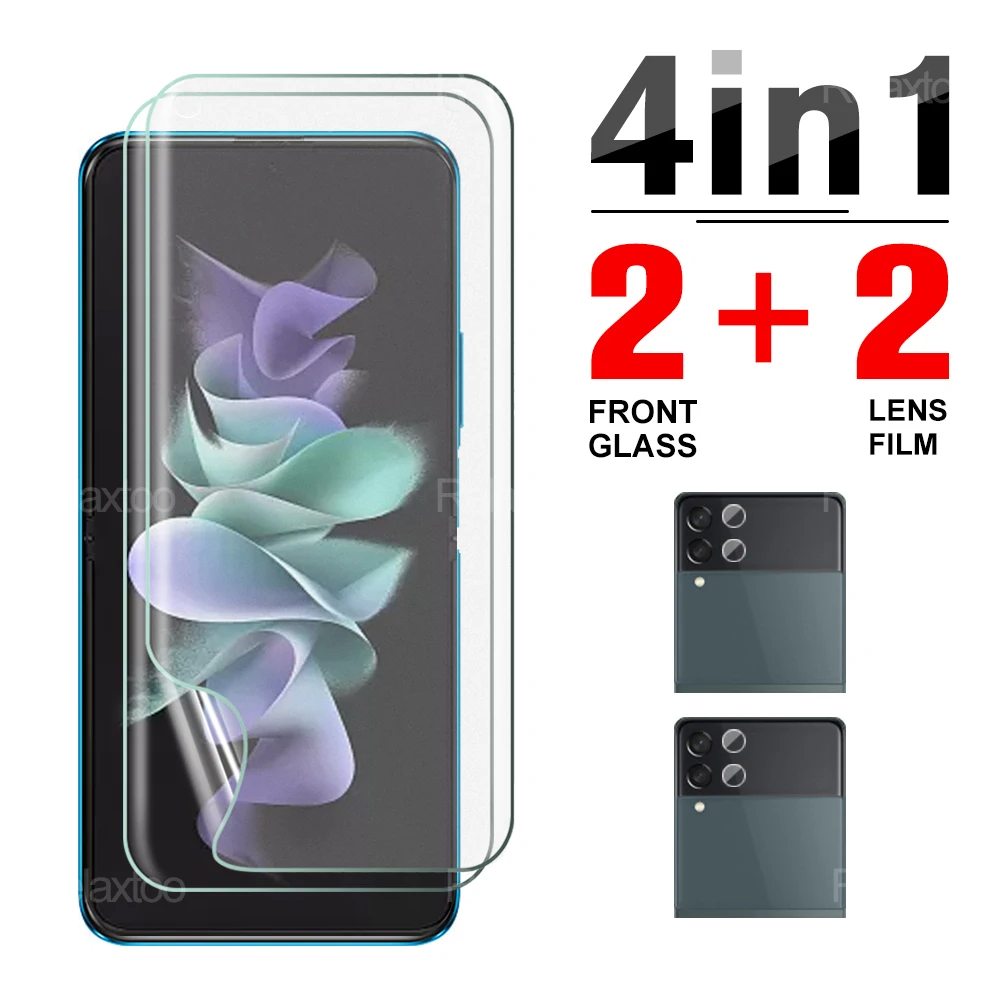 4в1 полное покрытие Гидрогелевая пленка для Samsung Z Flip3 5G защита переднего экрана для Galaxy ZFlip 3 zflip3 пленка для объектива камеры