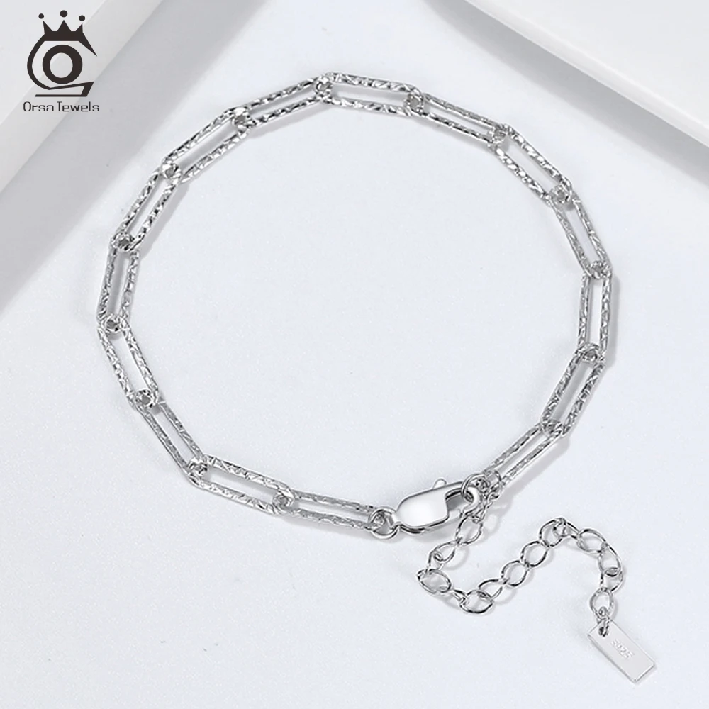 ORSA JEWELS кольцо ручной работы в итальянском стиле; Праздничная обувь реальные 925 стерлингового серебра 3,5 мм скрепки ссылка кованая цепочка браслет для женщин, ювелирные изделия в качестве подарка SB120Материал: 925 пробы-Серебристый