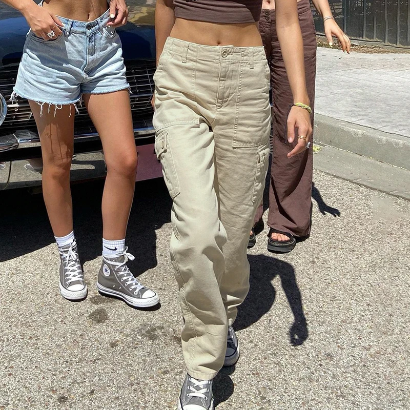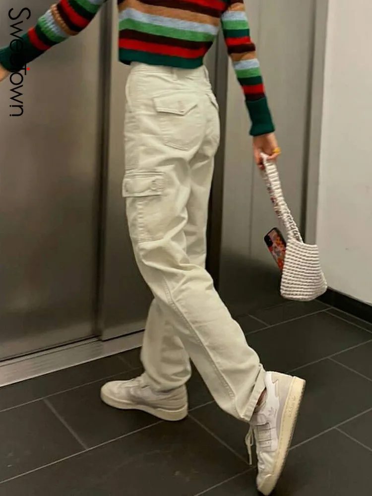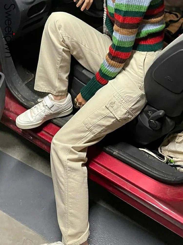 Винтажные Женские джинсы-багги Sweetown цвета хаки в стиле хиппи, уличная одежда с низкой талией, шаровары в стиле хиппи, сказочные повседневные джинсовые брюки
