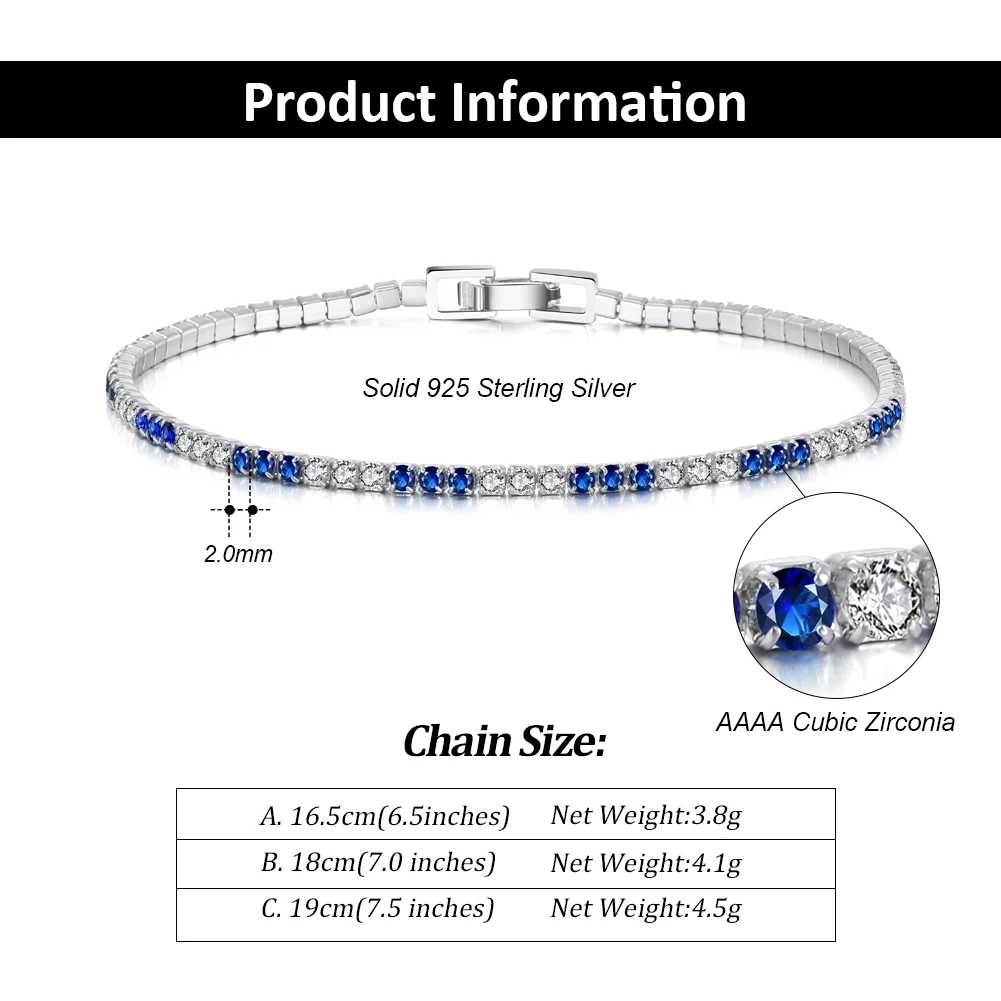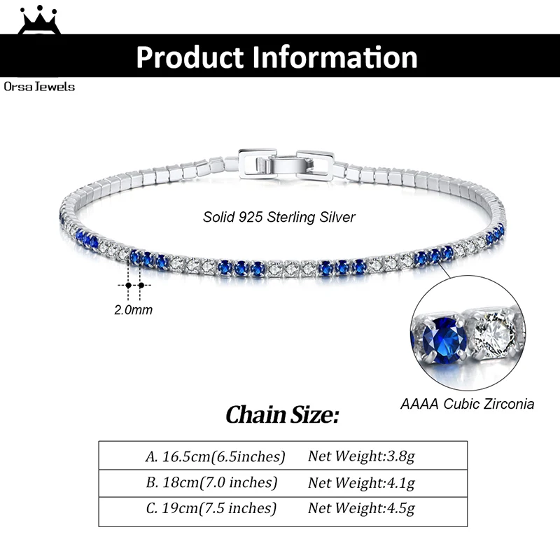 Женский браслет ORSA JEWELS, из стерлингового серебра 925 пробы, серебряный браслет для тенниса пробы, 2,0 мм, с синими и прозрачными фианитами, ювелирные изделия, SB117