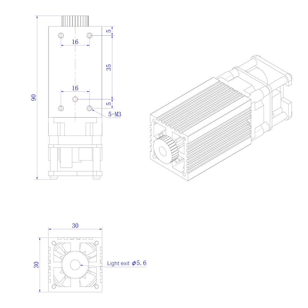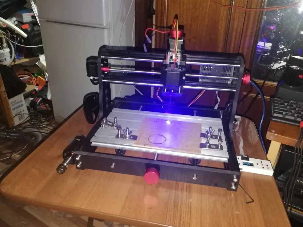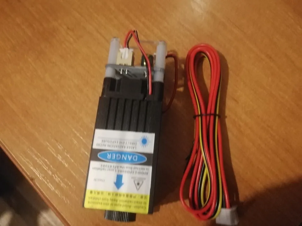 пришёл на 8вт,работает отлично ,смутил размер ,мой 2.5 ватт в разы больше чем на 7.5,но мощи действительно больше ,при тех же настройках фанеру 3мм режет с 3х раз ,мой старый прорезал за 6-8проходов и то не всегда дорезал с обдувом ,а этот без обдува реза дорезает