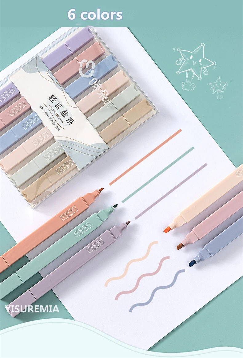 Yisuremia 6 шт.лот Kawaii Хайлайтер с мягким наконечником светлые цветные маркеры DIY Фотоальбом скрапбукинг флуоресцентные ручки Канцтовары