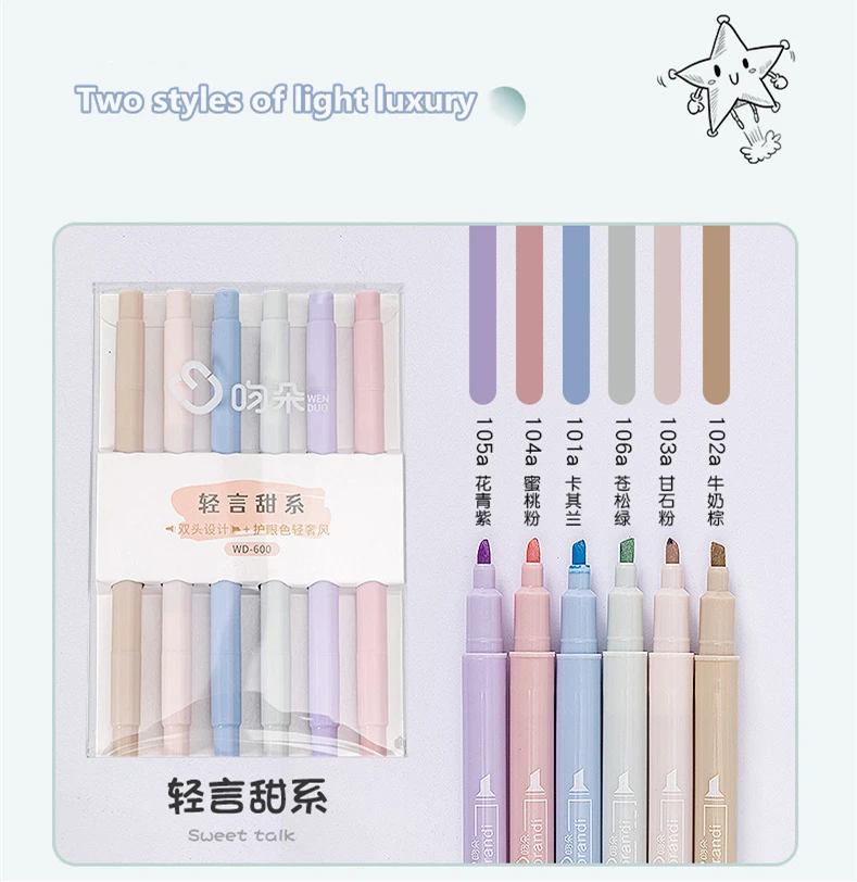 Новинка 2022, 6 шт., двухсторонний хайлайтер ярких цветов, маркеры ...