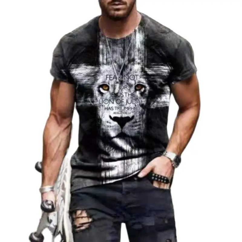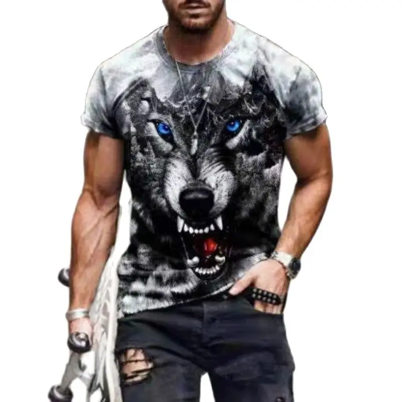Летняя мужская футболка с 3D-принтом волка, модная повседневная Уличная футболка большого размера с круглым вырезом и коротким рукавом в стиле Харадзюку