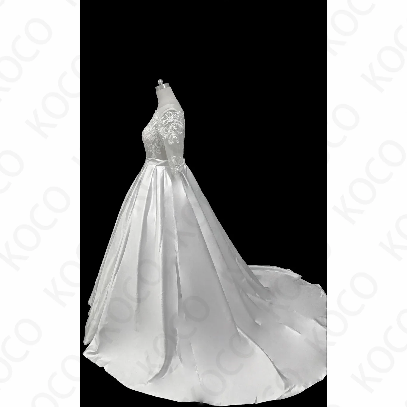 Платье свадебное атласное ТРАПЕЦИЕВИДНОЕ с рукавами-фонариками и кр...