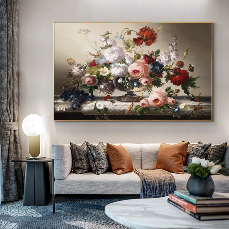 Картина на холсте, классические цветы, натюрморт, европейский стиль, картина для украшения гостиной, художественные плакаты и принты