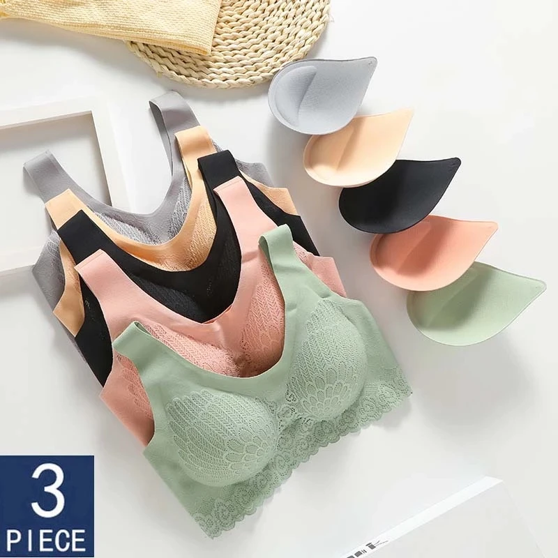 Бюстгальтер женский латексный, кружевной, бесшовный, 3 шт.лот, 3XL4XL
