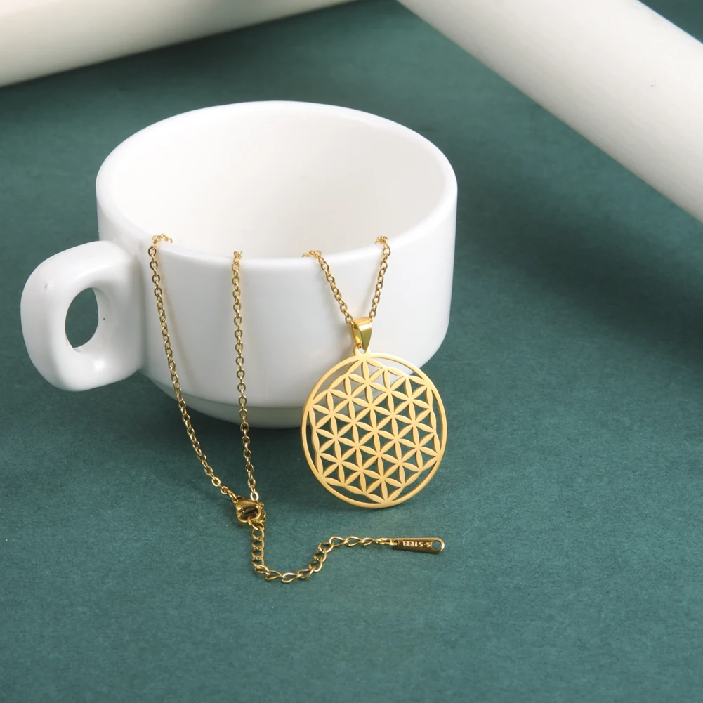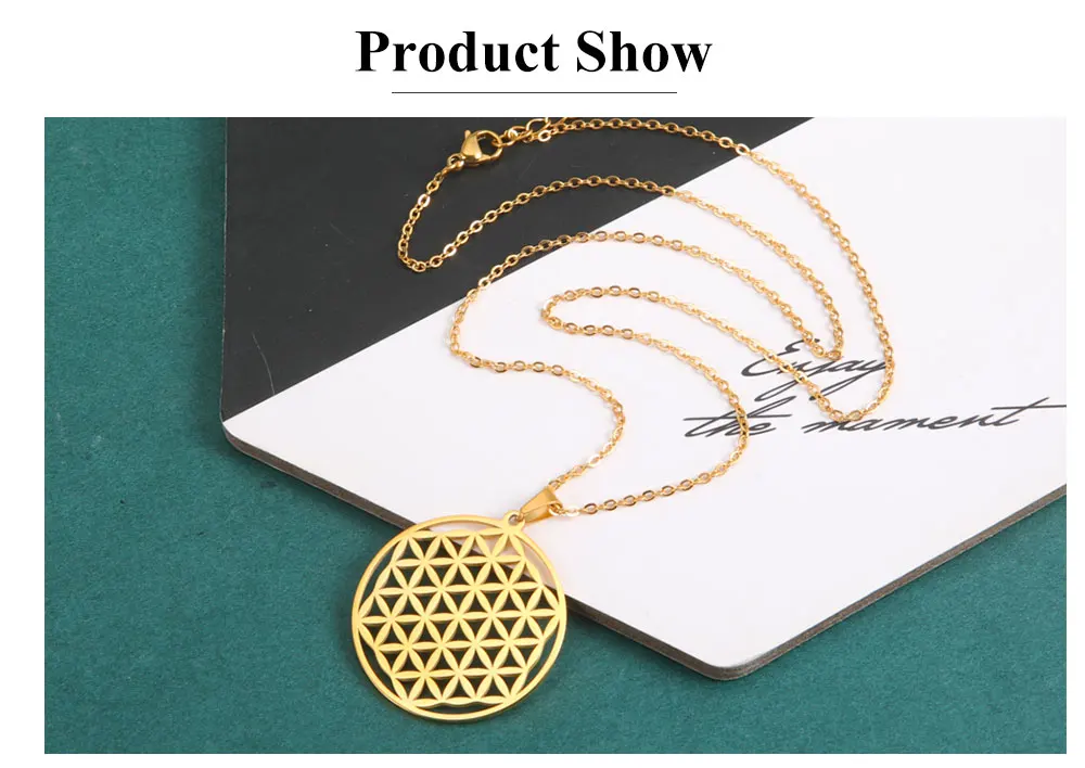 Ожерелье с цветком жизни Cazador, чакра викингов, ожерелье с цепочкой из нержавеющей стали с мандалой, амулет, геометрические украшения для женщин