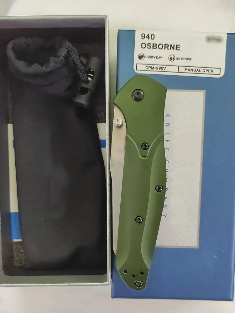 Модель: 940Общая длина: 197 ммДлина лезвия: 82 ммТолщина лезвия: 3 ммМатериал лезвия: 9cr13 Mark S30VТвердость: 59HRCОтделка: сатин/черное титановое покрытиеДлина ручки: 107 ммМатериал ручки: авиационный алюминийКарманный зажим: наконечникТип ножа: ручнойЦвет: зеленыйВес нетто ножа: 82 г