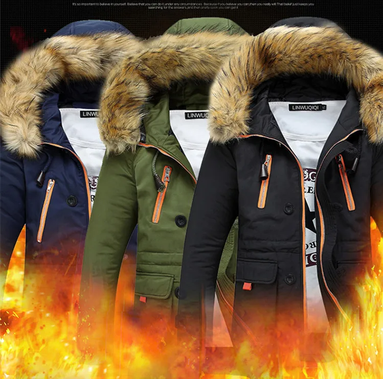 Мужская Утепленная зимняя куртка, воротник из искусственного меха, длинные толстые парки, мужская верхняя одежда, ветровка с капюшоном, для улицы, для-30 градусов, зимние пальто