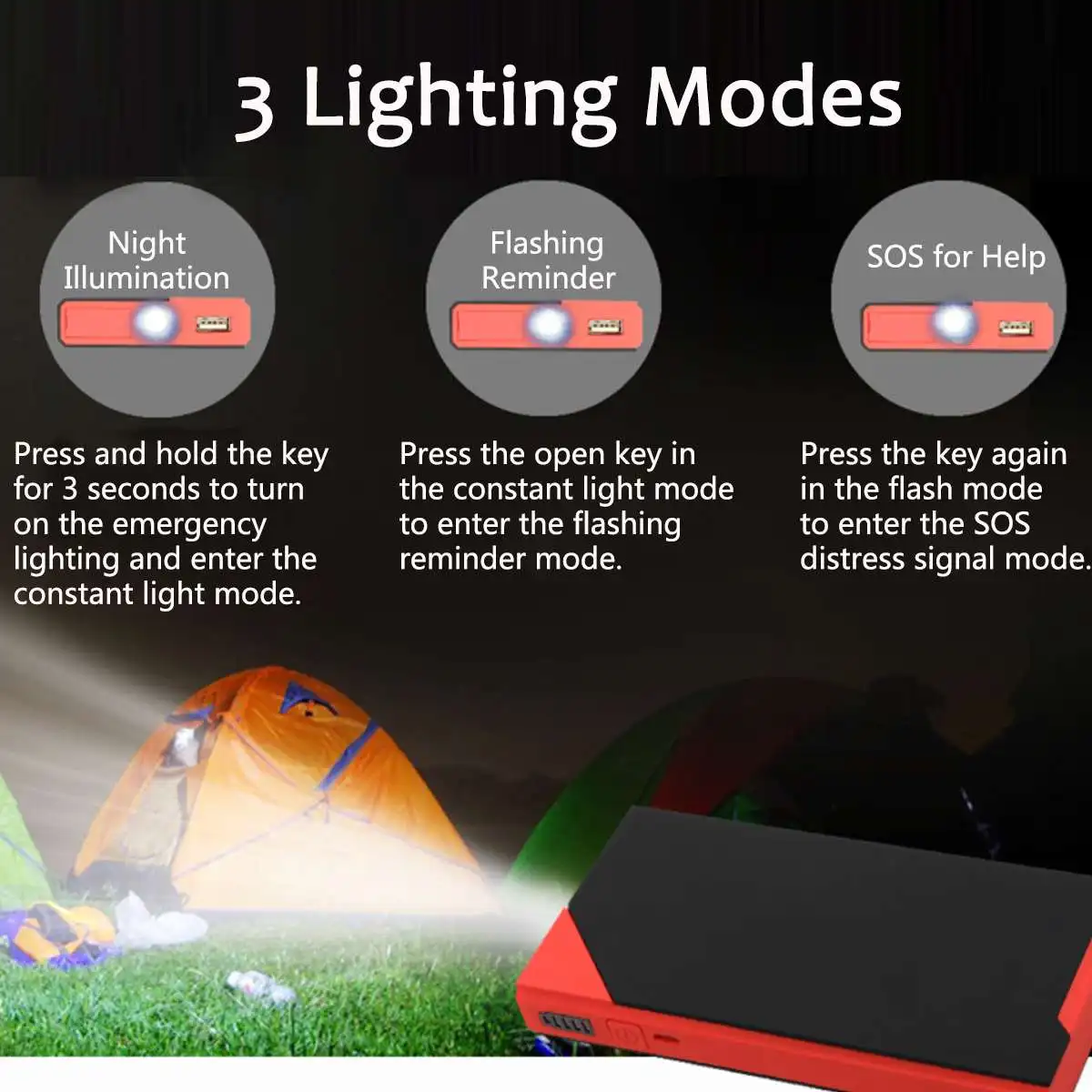 Четыре практические функции:1. Мгновенно запустите автомобиль, безопасность и предметы первой необходимости2. Эффективная интеллектуальная зарядка, может быть применена к более чем 95% ноутбуку,Мобильные телефоны, планшетные компьютеры, камеры и другое электронное оборудование3. Супер яркий светодиодный фонарик, с режимом вспышки, может конвертировать аварийный режим SOS4. Защита от температуры, защита от короткого замыкания, защита от постоянного напряжения, защита от постоянного тока, защита от перезаряда, защита от разрядки, защита баланса, защита от магнитного поля