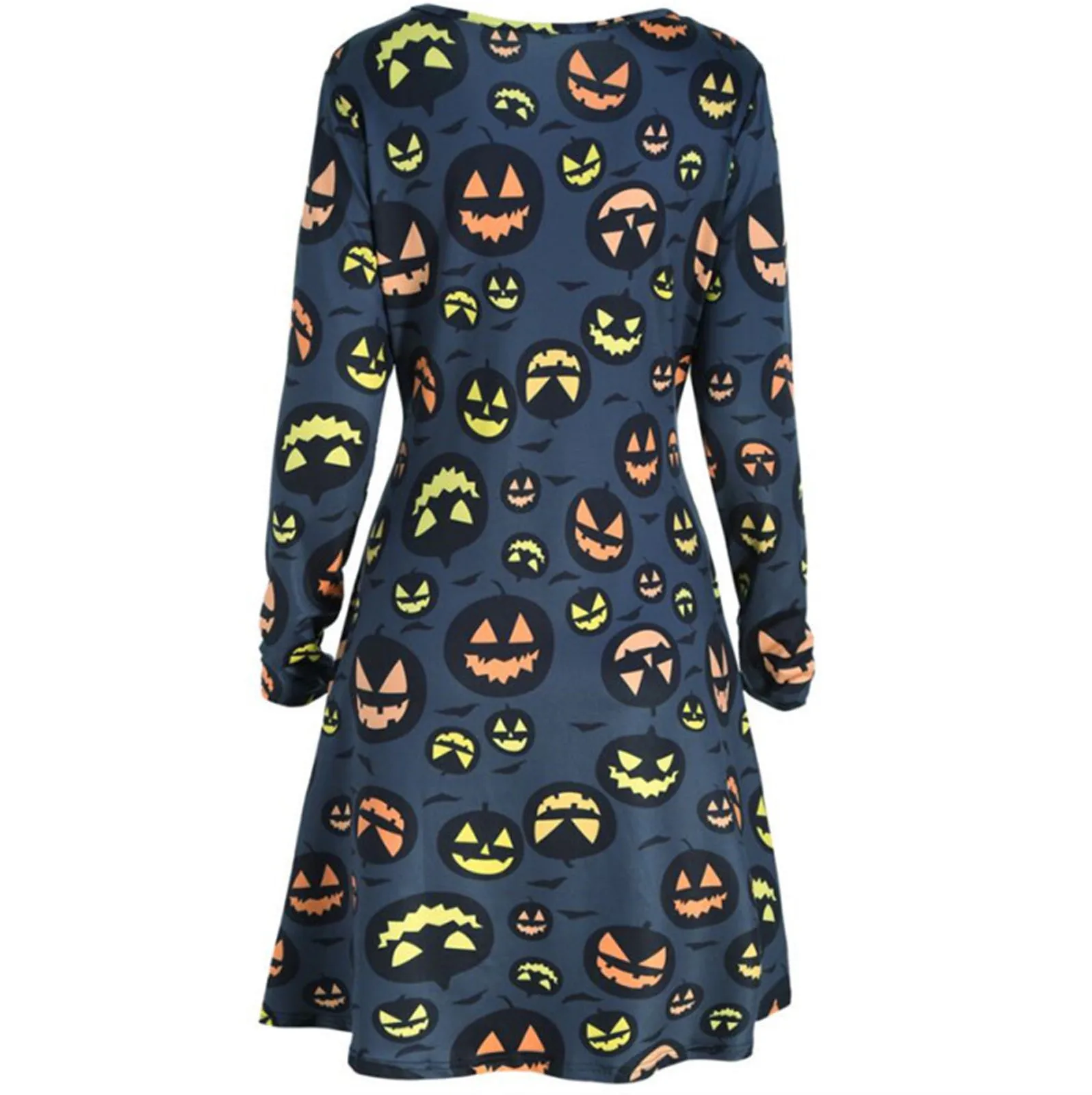 Женские праздничные платья на Хэллоуин, платье с рукавом 3/4, Повседневные Вечерние платья с принтом на осень