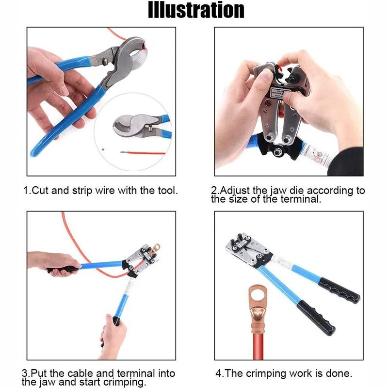 Особенности:1. Точные обжимные штамповки и интегральный замок с саморегулирующимся механизмом для обеспечения высокого качества обжимные эффекты даже после многократного обжима.2. Разработанная в соответствии с инженерными факторами человека, длинная ручка обеспечивает максимальное плечо и легкое закрытие. Противоскользящие ручки с канавками для безопасного использования.3. Изготовлен из закаленной углеродистой стали с шестиугольным типом, он работает для голой проволоки 6-50 мм 2; Емкость.4. Профили могут быть установлены путем поворота обжимной ручки с широкой степенью, что позволяет получить доступ к труднодоступных областях.5. Компактный, легкий, простой в использовании и переноске, профессиональный и практичный обжимной инструмент.