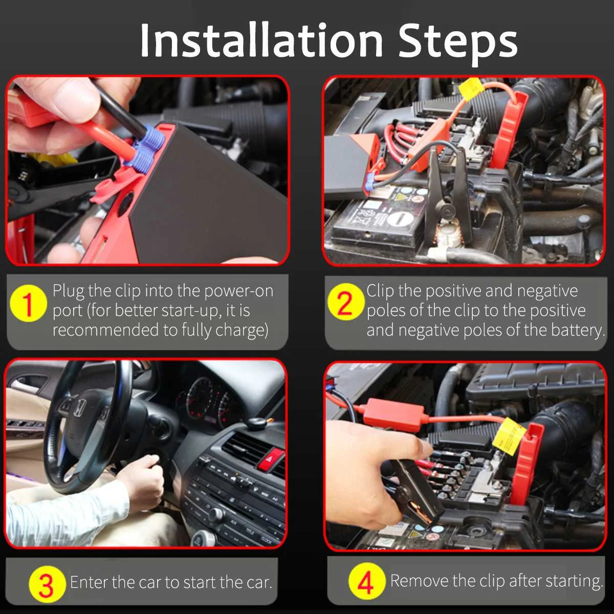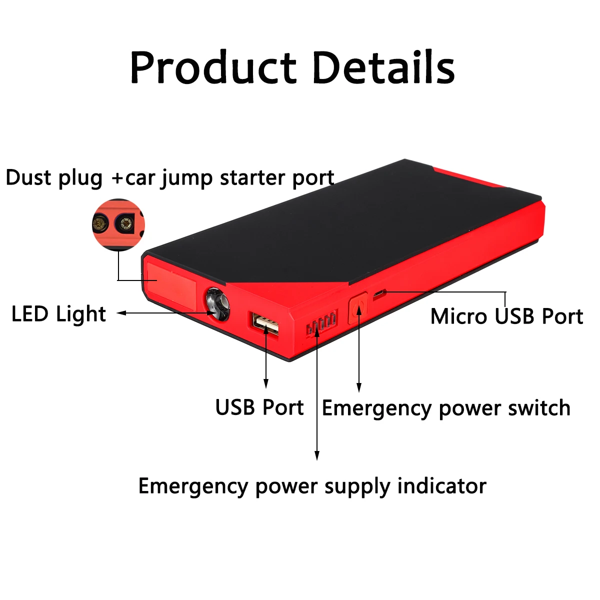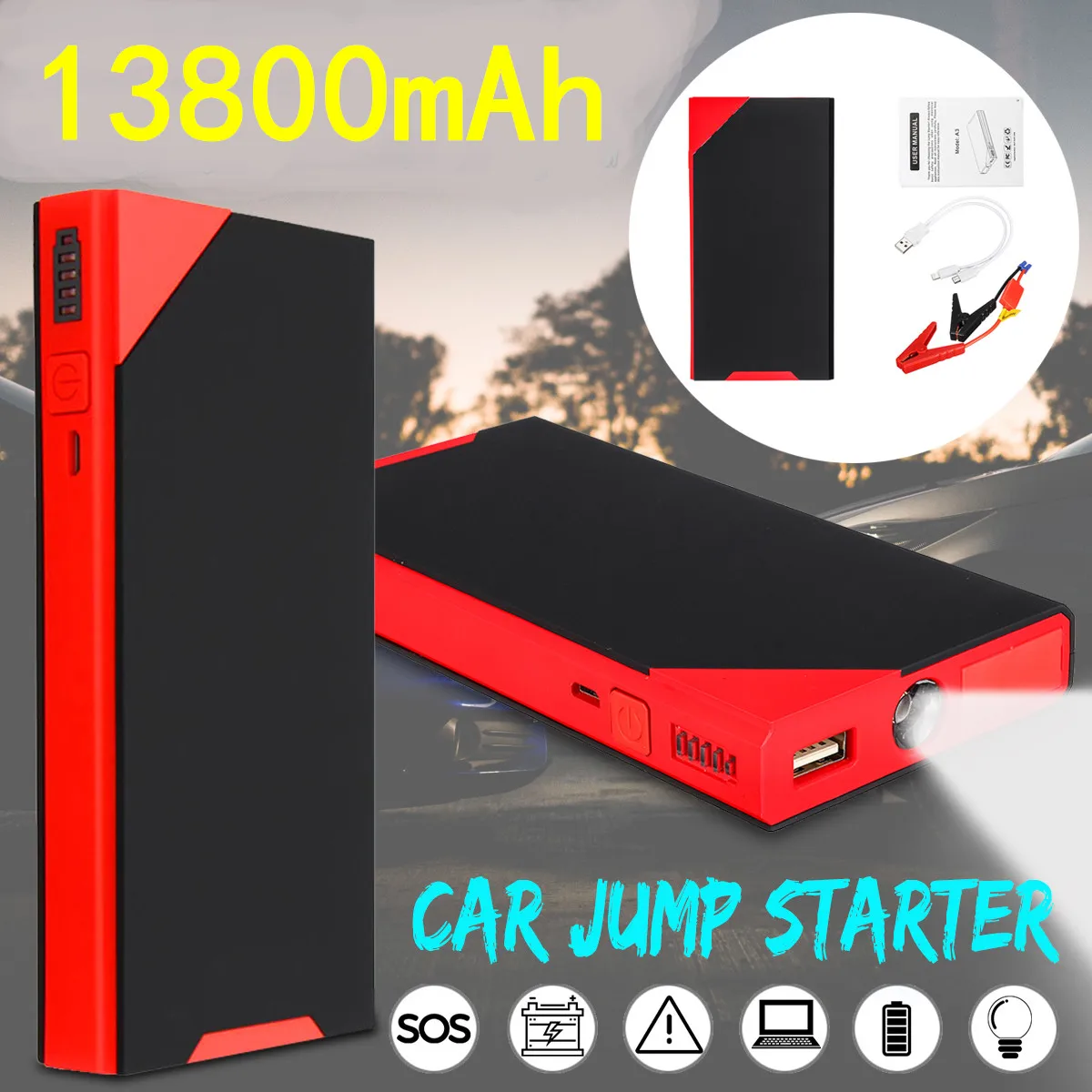 Четыре практических функции:1. Мгновенно заведите автомобиль, безопасность и экстренные потребности2. Эффективная интеллектуальная зарядка, может применяться для более чем 95% ноутбуков,Мобильные телефоны, планшетные ПК, камеры и другое электронное оборудование3. Суперъяркий светодиодный фонарик с режимом вспышки может преобразовывать аварийный режим SOS4. Температурная защита, защита от короткого замыкания, защита от постоянного напряжения, защита от постоянного тока, защита от перезарядки, защита от переразряда, защита баланса, защита магнитного поля