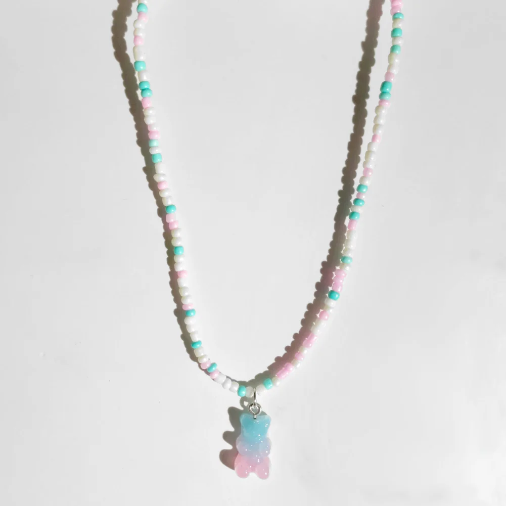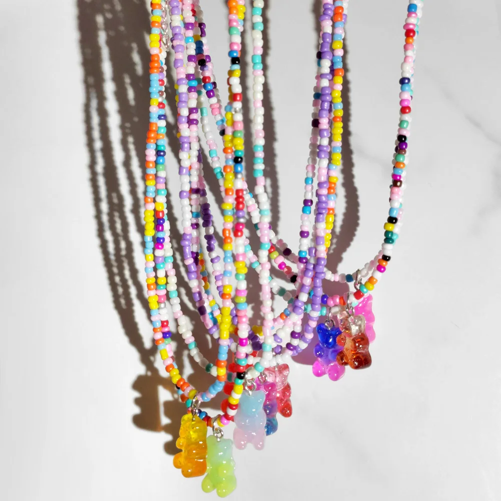 Ожерелье-чокер ручной работы с бисером яркого желейного медведя, ож...
