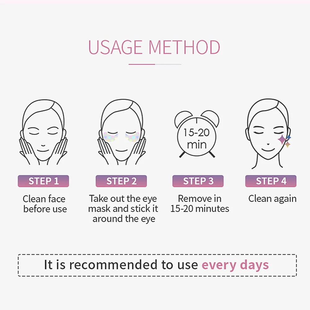 Простота в использовании: Используйте коллагеновую маску 2-3 раза в неделю в течение 10-30 минут. Лучшие результаты.Отдельно запечатанная пленка для мешков для глаз: Наша маска специально разработана для холодного хранения, и определенное количество холодного компресса может быть добавлено, чтобы уменьшить отечность. Мы рекомендуем охладить в течение 1 часа перед использованием.Как использовать:1) чистая и сухая поверхность2) Выньте маску для глаз ложкой3) Нанесите маску для глаз под глазами4) Используйте 2-3 раза в неделю, около 30 минут5) удалите маску для глаз и мягко массируйте до полного впитывания