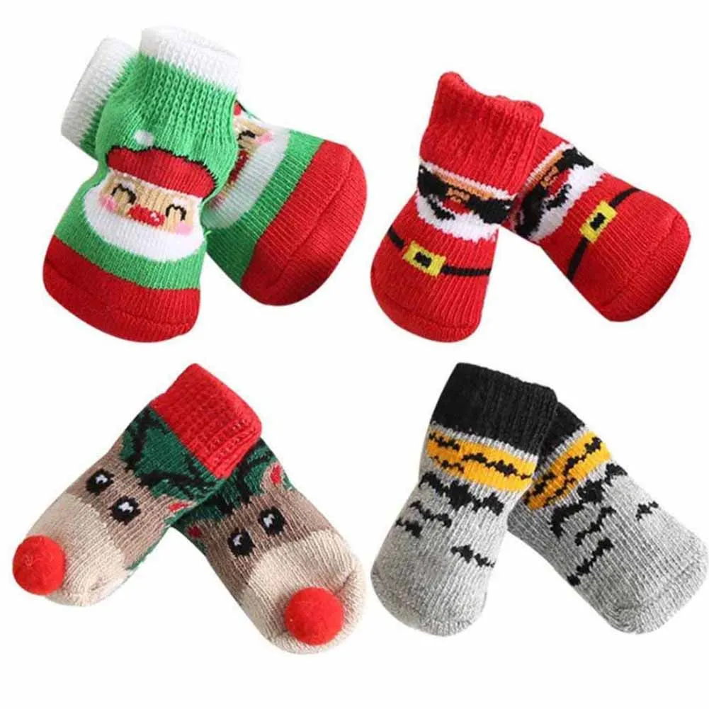 Носки для собак и кошек, 4 шт., нескользящая Рождественская обувь, ...