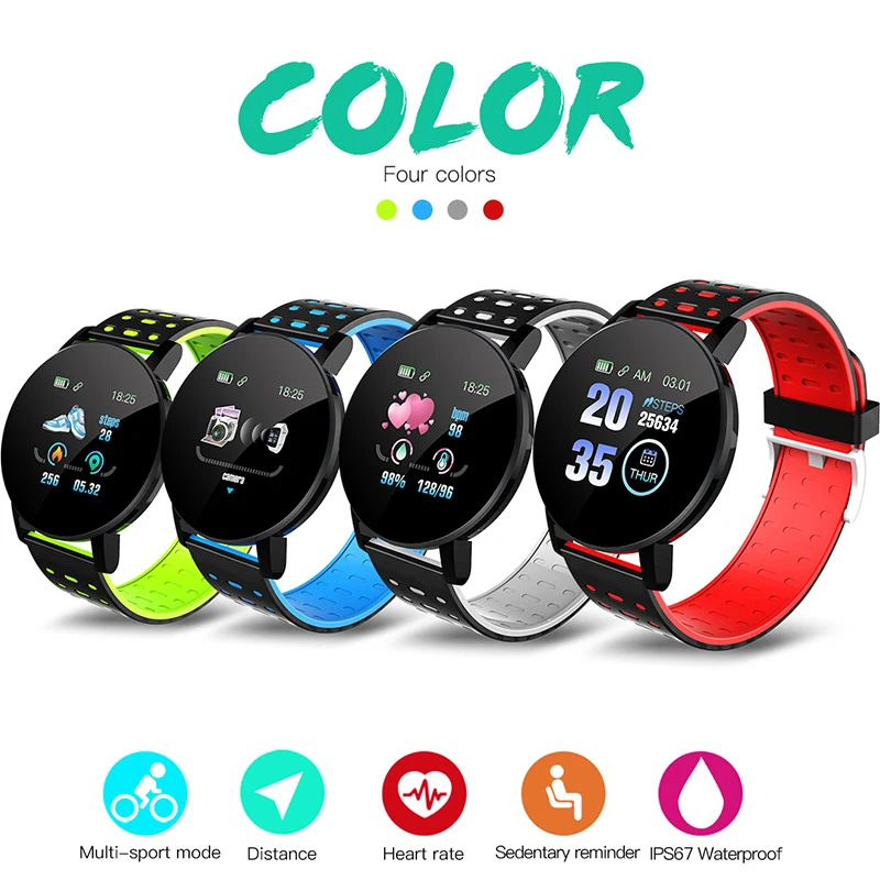 2021 119 Plus Смарт-часы для мужчин и женщин с измерением кровяного давления водонепроницаемые спортивные круглые Смарт-часы фитнес-трекер для Android IOS
