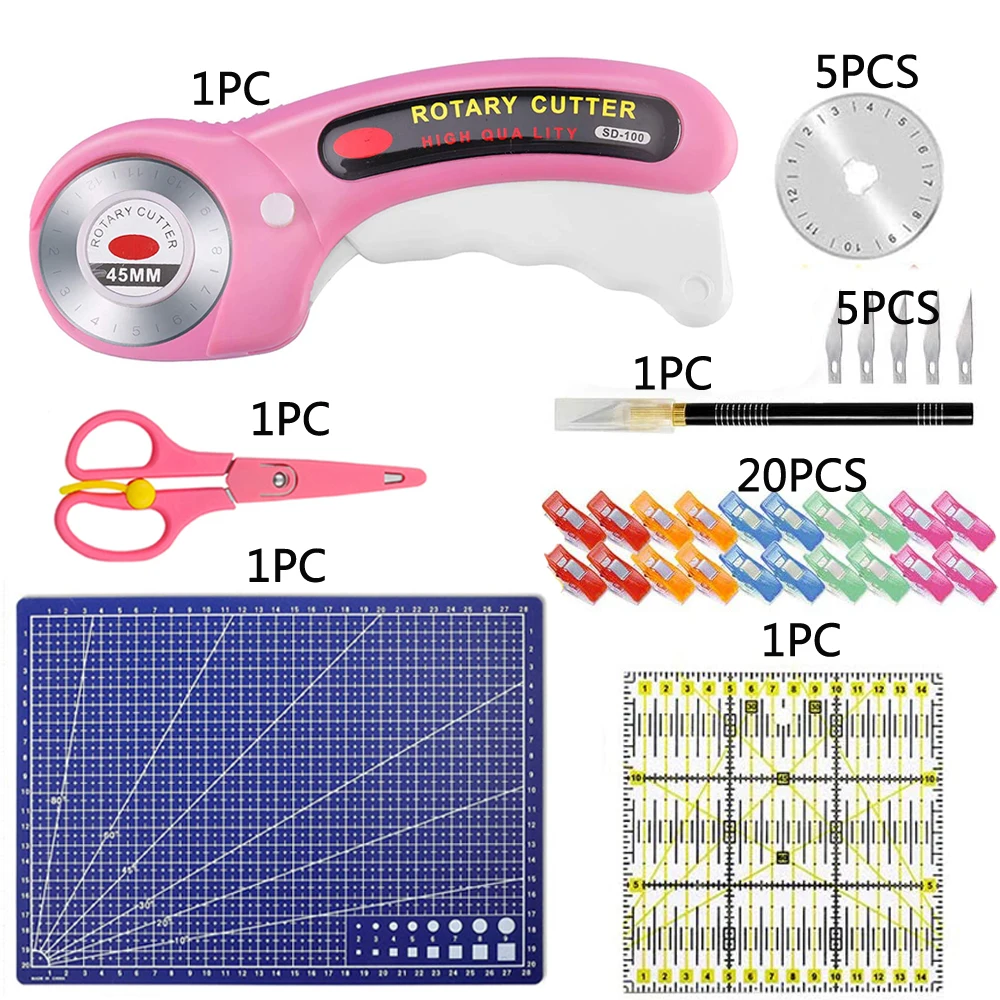 35 шт. 45 мм роторные режущие наборы с 5 лезвиями Лоскутная линейка резной нож ножницы тканевые зажимы для резки швейных аксессуаров