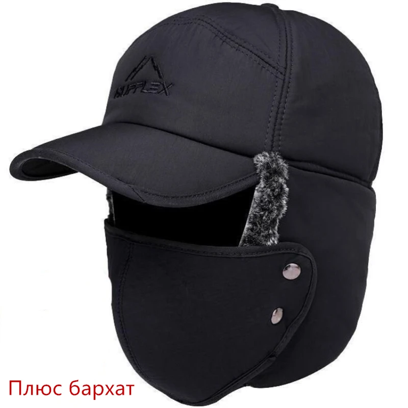 Лыжная маска для России, Мужская зимняя шапка в стиле милитари с большим ушком 60 см, плюшевые плотные теплые модные черные уличные шапки-бомберы для верховой езды