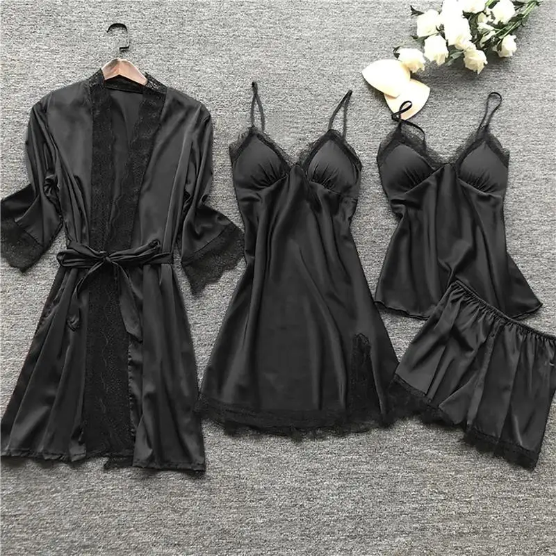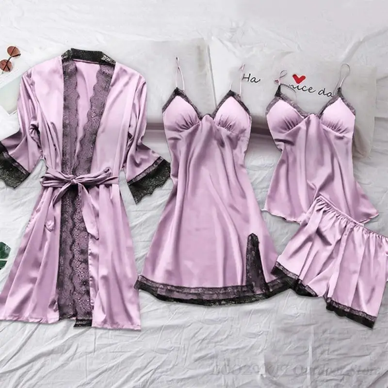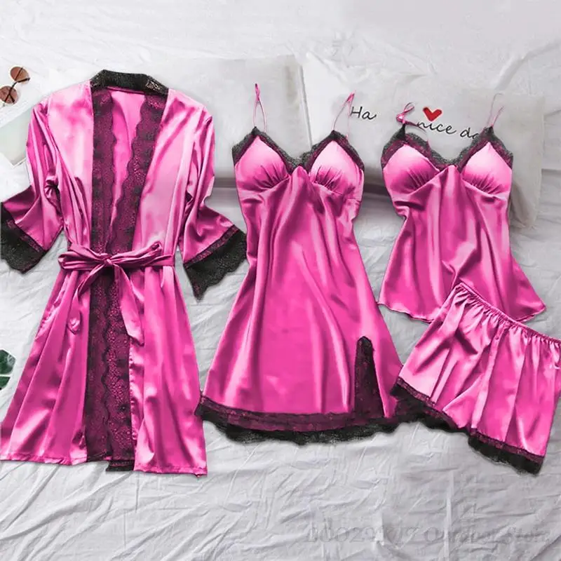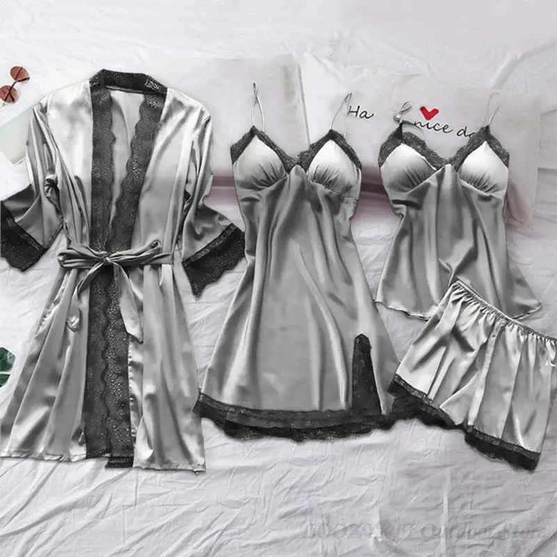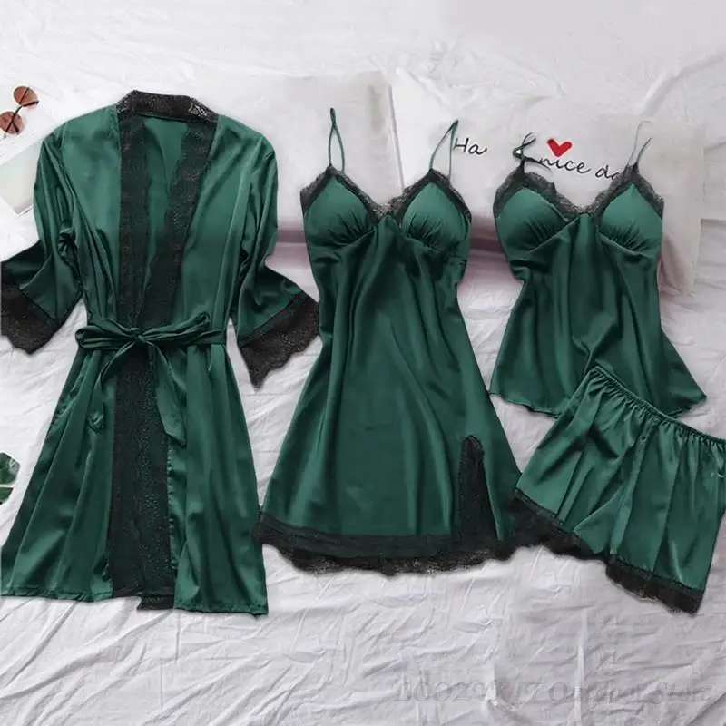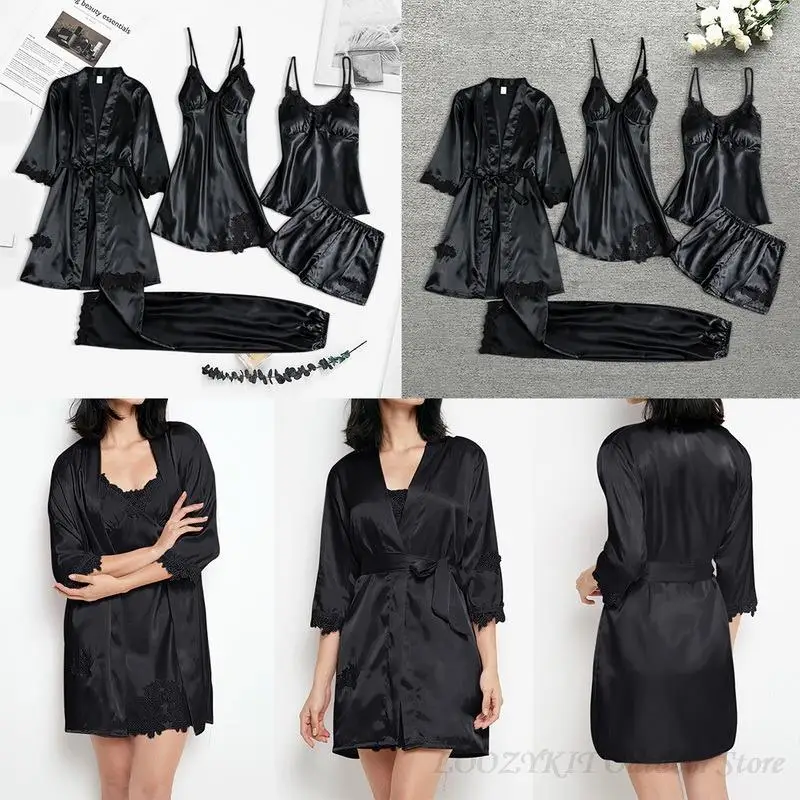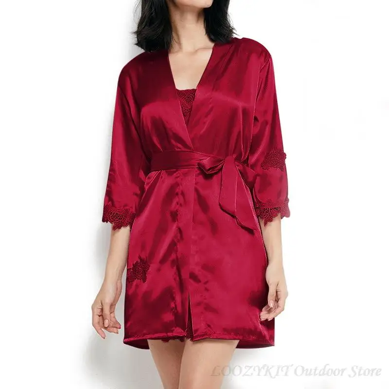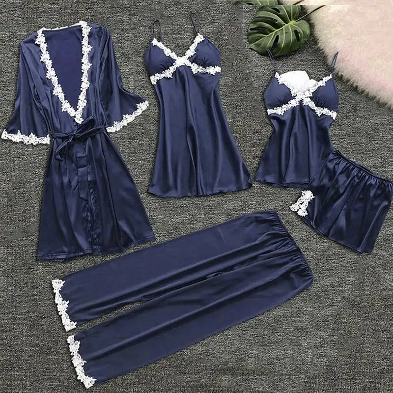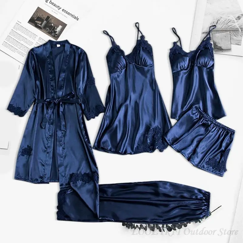 LOOZYKIT 5 шт. шелковый халат, Женская кружевная Пижама, комплект одежды для сна, Весенняя ночная рубашка