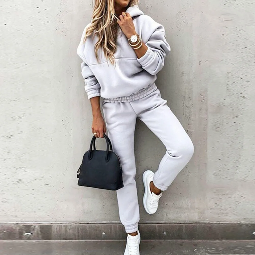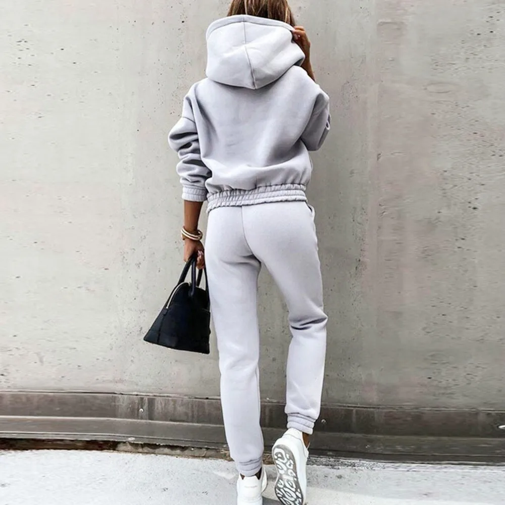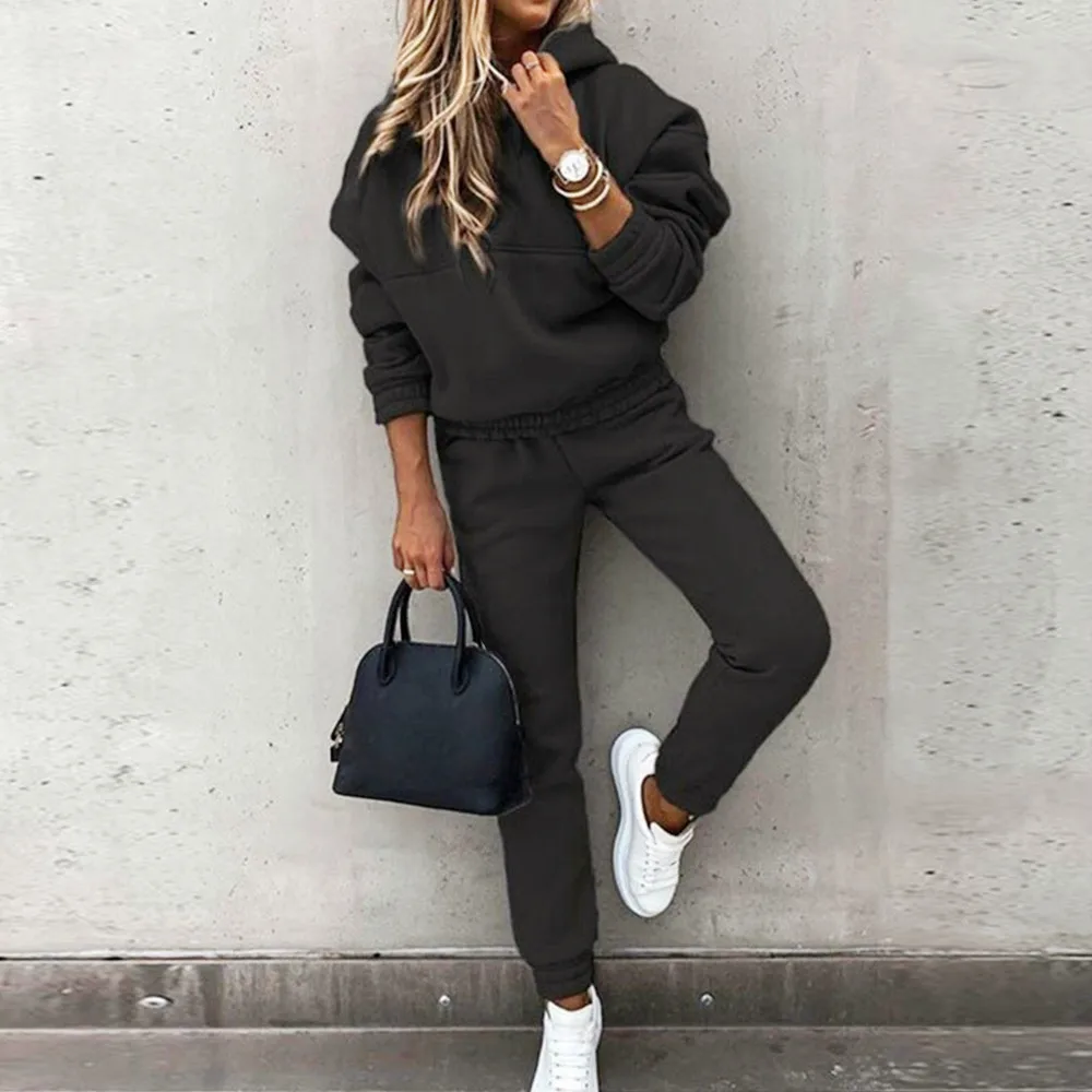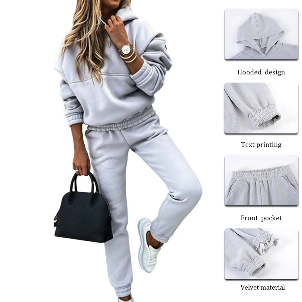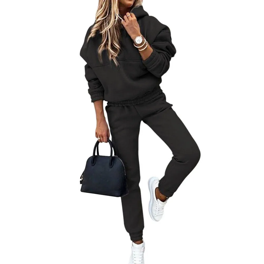 Женские спортивные костюмы для бега, теплый спортивный костюм из 2 предметов, толстовка с капюшоном и штаны, спортивный костюм, женский осенне-зимний костюм 3XL
