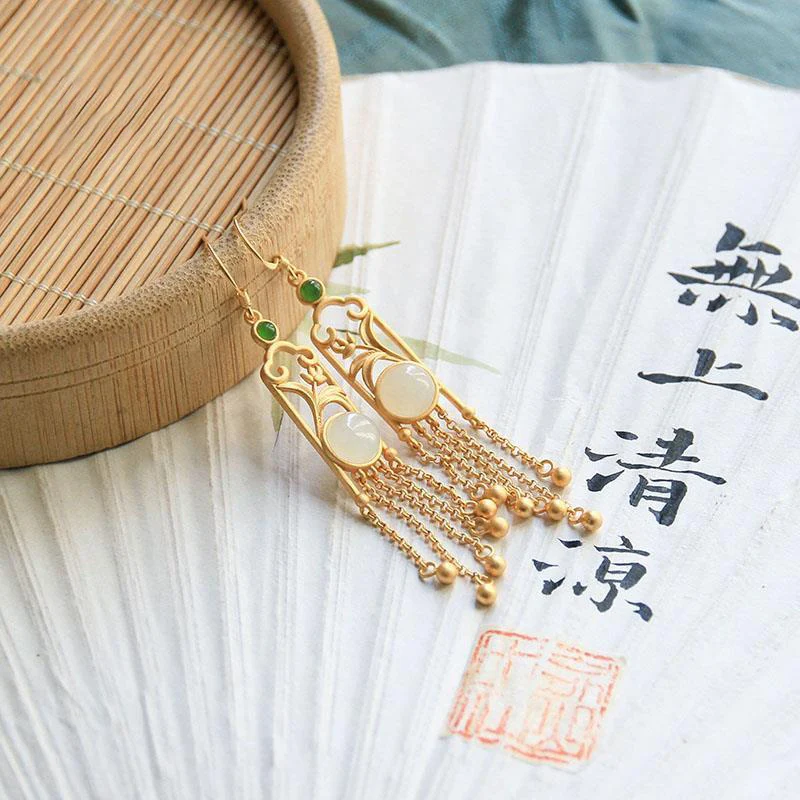 Новые дизайнерские длинные серьги из натурального белого нефрита с бахромой из магнолии китайские яркие Ретро Женские брендовые ювелирные изделия