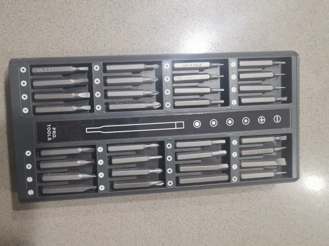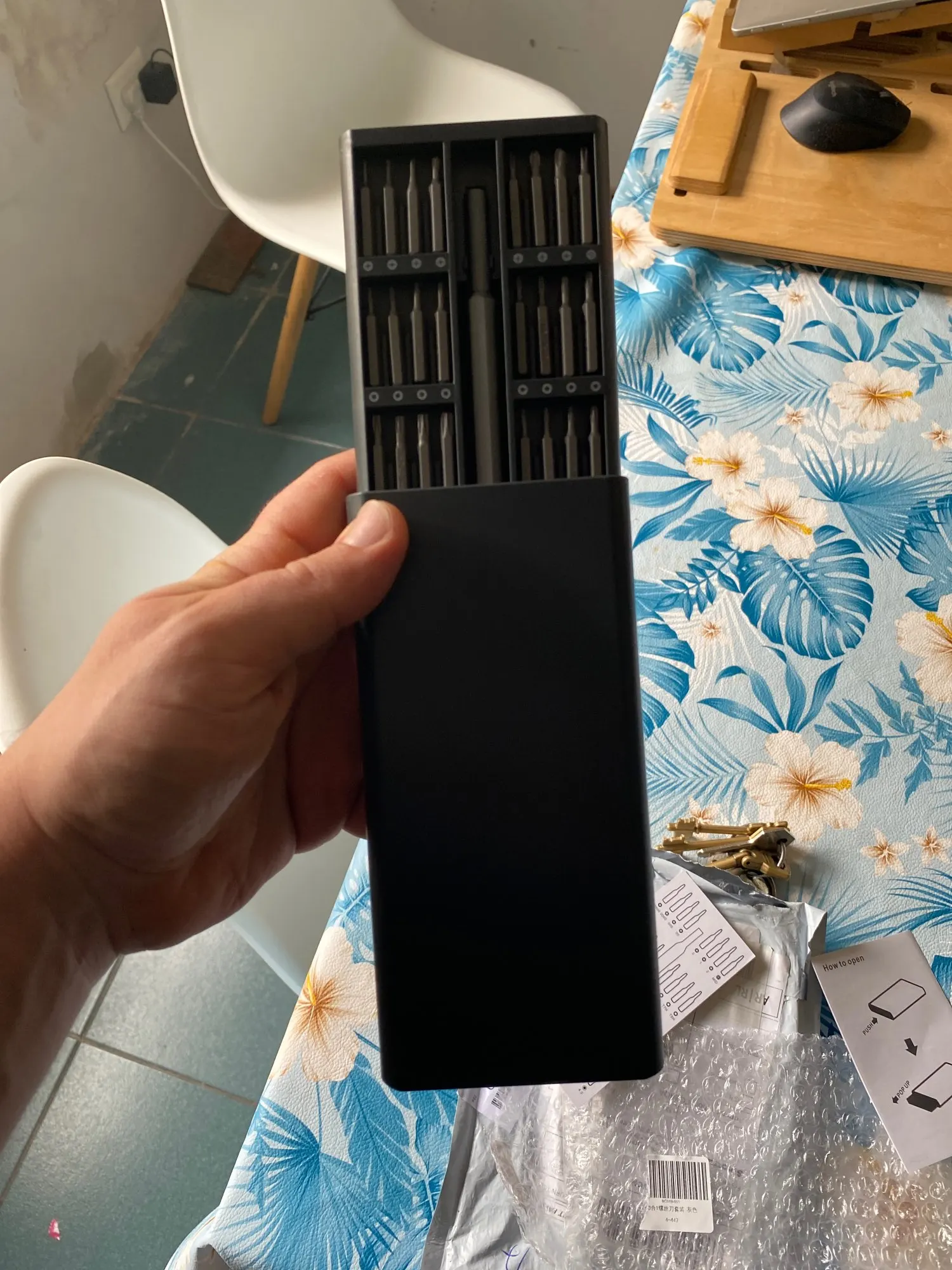 Куплю официальный комплект Xiaomi, так как в нем есть металлические чехлы. Это пластик, но содержит больше бит, и я могу использовать отвертку между наборами. Магнитный коврик-это ужасно, и ячмень держит на нем все что угодно.