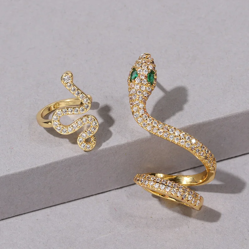 Женские серьги-клипсы в виде змеи, винтажные золотые клипсы с цирко...