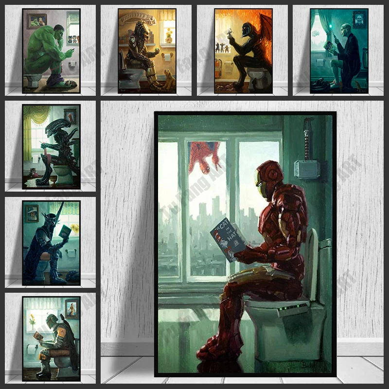Смешная унитаза, Юмористическая Картина на холсте, супергерой, Желе...