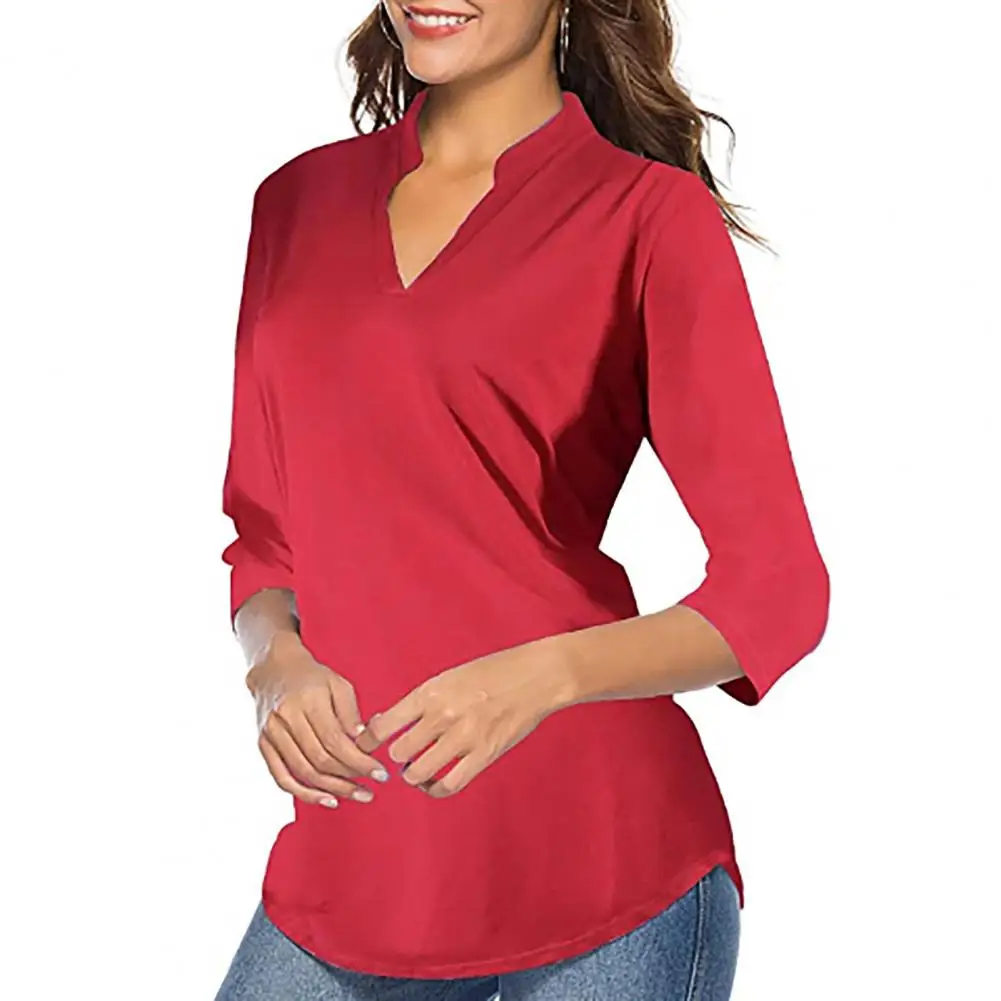 Описание: Повседневная и модная Женская Осенняя блузка с однотонным рукавом 3/4, v-образным вырезом и воротником-стойкой. Приталенная блузка может сочетаться с джинсами, слаксами, деловыми брюками или юбками для элегантного и очаровательного повседневного образа. Женская Блузка изготовлена из высококачественного полиэстера, мягкая, дышащая и удобная в носке. На выбор 4 размера: M, L, XL, 2XL. Женская блузка подходит для многих случаев, таких как досуг, выход, семейный сбор, свидание, вечерние, работа, шопинг, повседневная одежда.