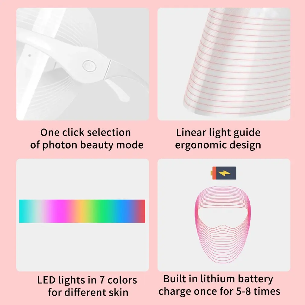 Светодиодная маска для лица, светотерапия, 7 цветов светильник терапия, фотон для лица, косметическое устройство для омоложения лица, уменьшение морщин