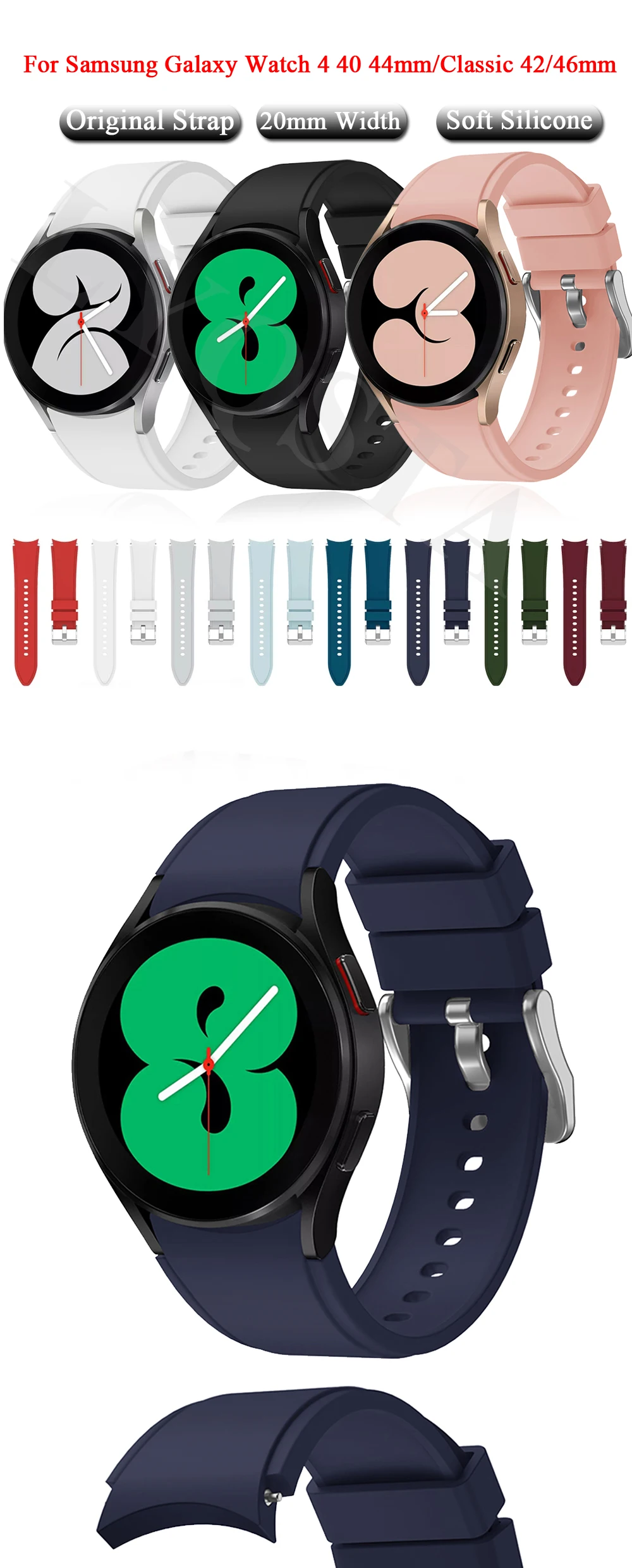 20 мм силиконовый ремешок для часов Samsung Galaxy Watch 4 Classic 42 мм/Galaxy Watch 4 40 мм 44 оригинальный ремешок для браслета 20 мм силиконовый ремешок для часов Samsung Galaxy Watch 4 Classic 42 мм/Galaxy Watch 4 40 мм 44 оригинальный ремешок для браслета