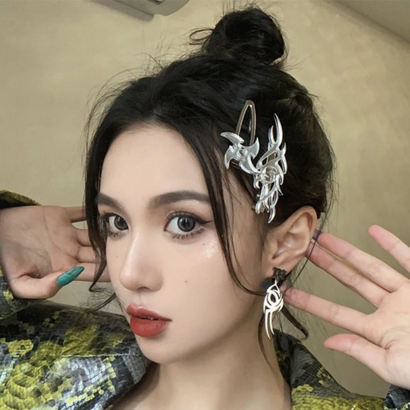Женская заколка для волос Goth Flame, большая шпилька для волос в стиле Харадзюку, аксессуар для волос ручной работы, в стиле панк, 90-х