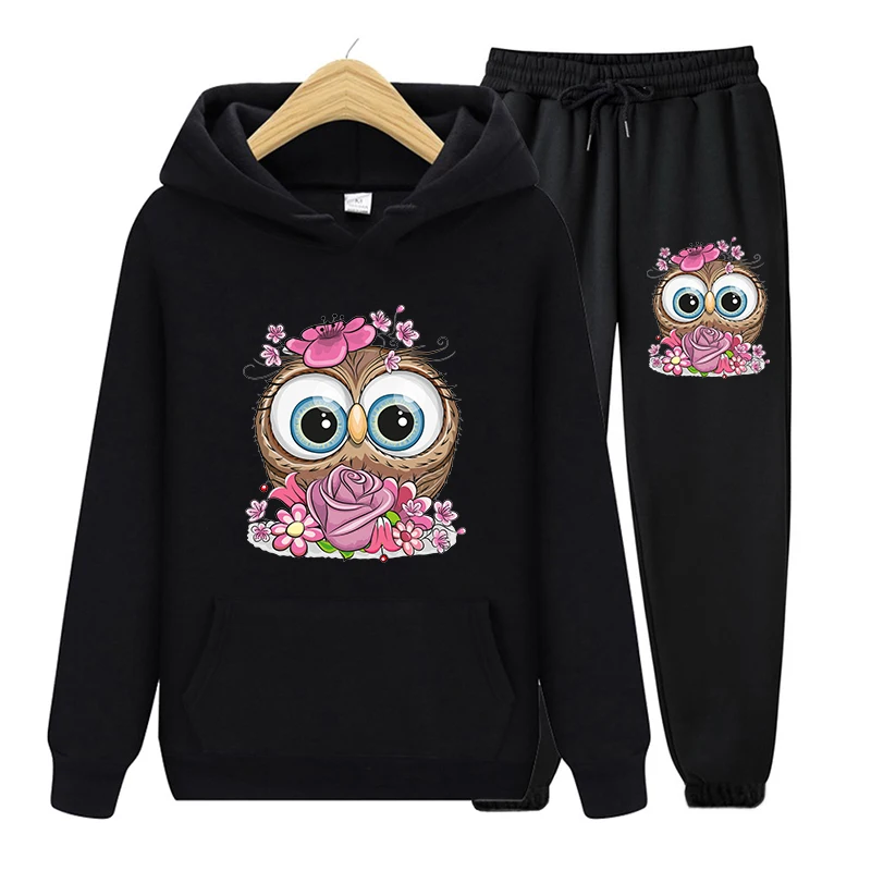 Костюм спортивный женский из 2 предметов с принтом Совы и капюшоном
