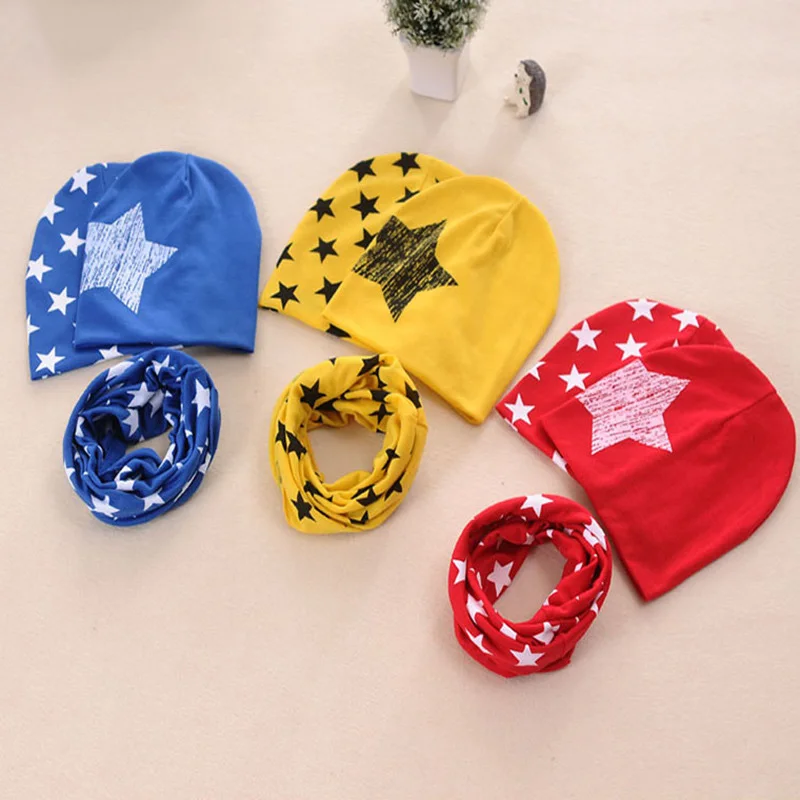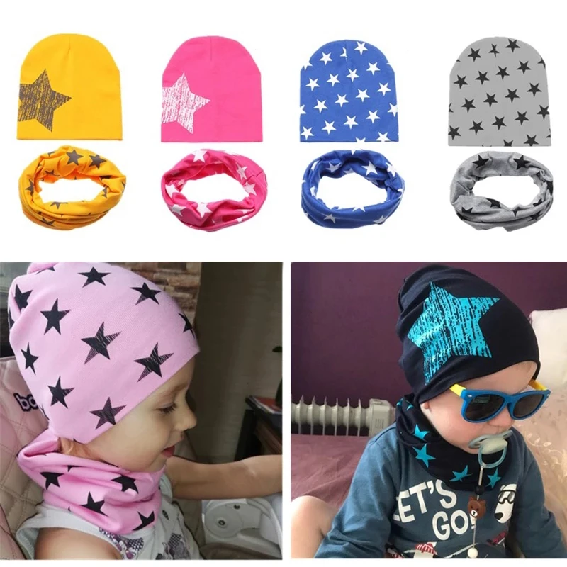 2 шт./компл., шапка для малышей, шарф, комплект со звездами, детская шапка, теплая детская шапочка, аксессуары для мальчиков и девочек, шапка для малышей, Осень-зима