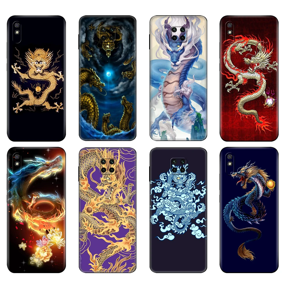 Черный чехол из ТПУ для Xiaomi Redmi 7A, 8, 8A, 9, 9A, 9C, чехол для Redmi Note 8T, 8 Pro, T, Note 9, 9S, 9 Pro, чехол с китайским драконом зодиака