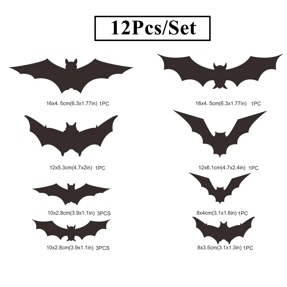 12 шт.компл. украшение на Хэллоуин, 3D черные наклейки на стену летучая мышь, наклейки для дома, вечеринки, комнаты сделай сам, страшный декор, страшные съемные наклейки