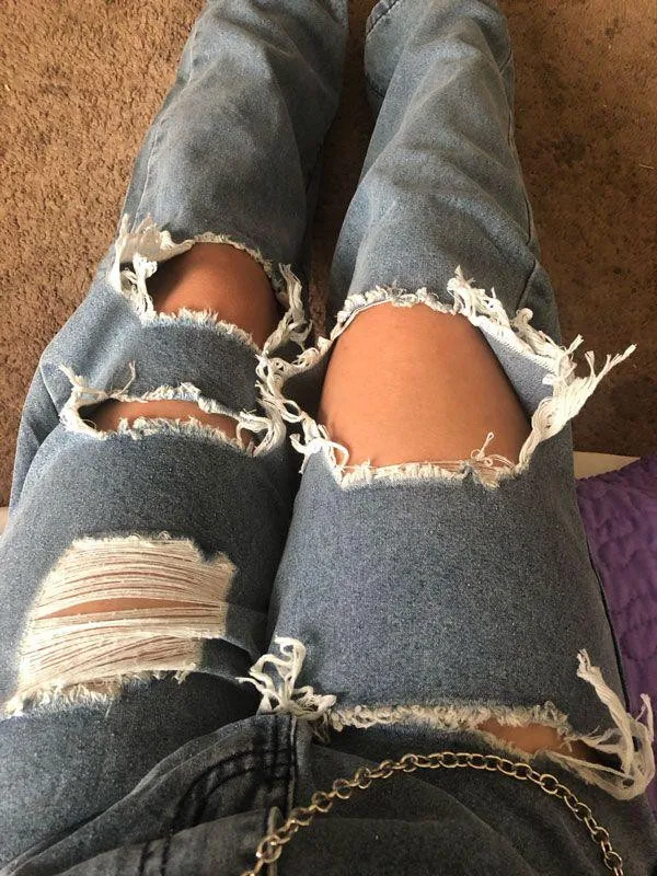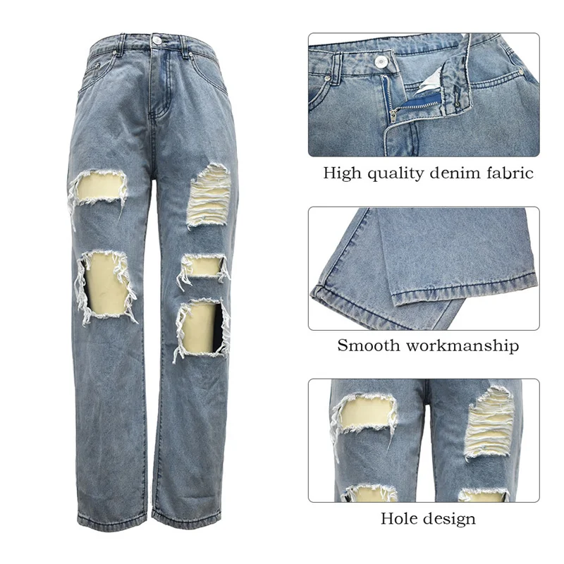 Женские модные сексуальные джинсы, повседневные брюки с высокой талией, рваные брюки, женские джинсы, джинсы в стиле ретро, рваные, потертые, свободные джинсы для женщин