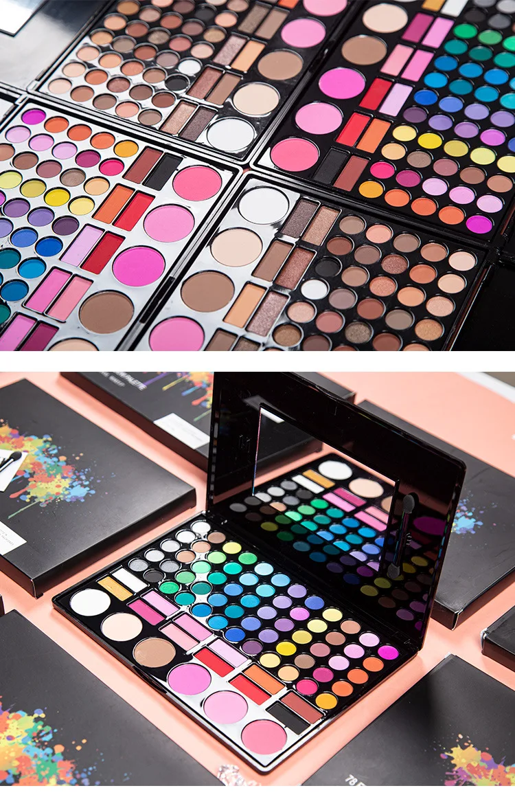 Палитра теней для век, 78 цветов, палитра для макияжа, высокие пигм...