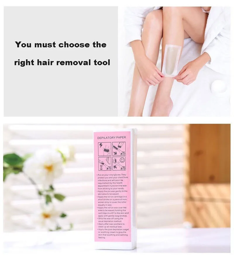 Восковые полоски для эпиляции 100 штПолезные советы: бумагу для удаления волос следует использовать вместе с воском для депиляцииКак использовать: этот товар является аксессуаром для восковой обработки.Нанесите воск на кожу, нанесите бумагу и сильно надавите на восковой слой.Снимите его через 30 секунд. Оторвите снизу полоску.Примечание: Если на коже появились раны, отеки, сыпь или симптомы аллергии, пожалуйста, не используйте его!