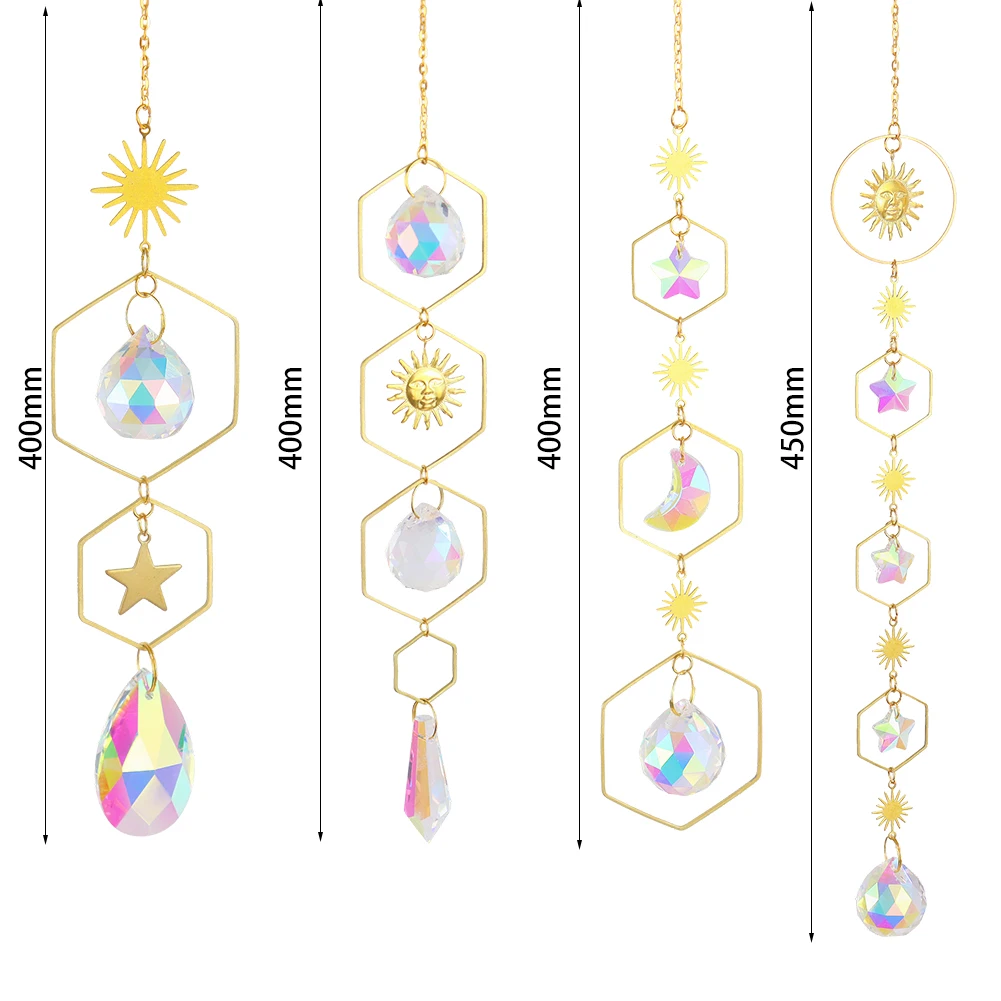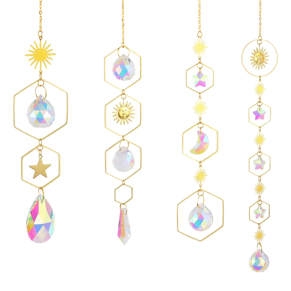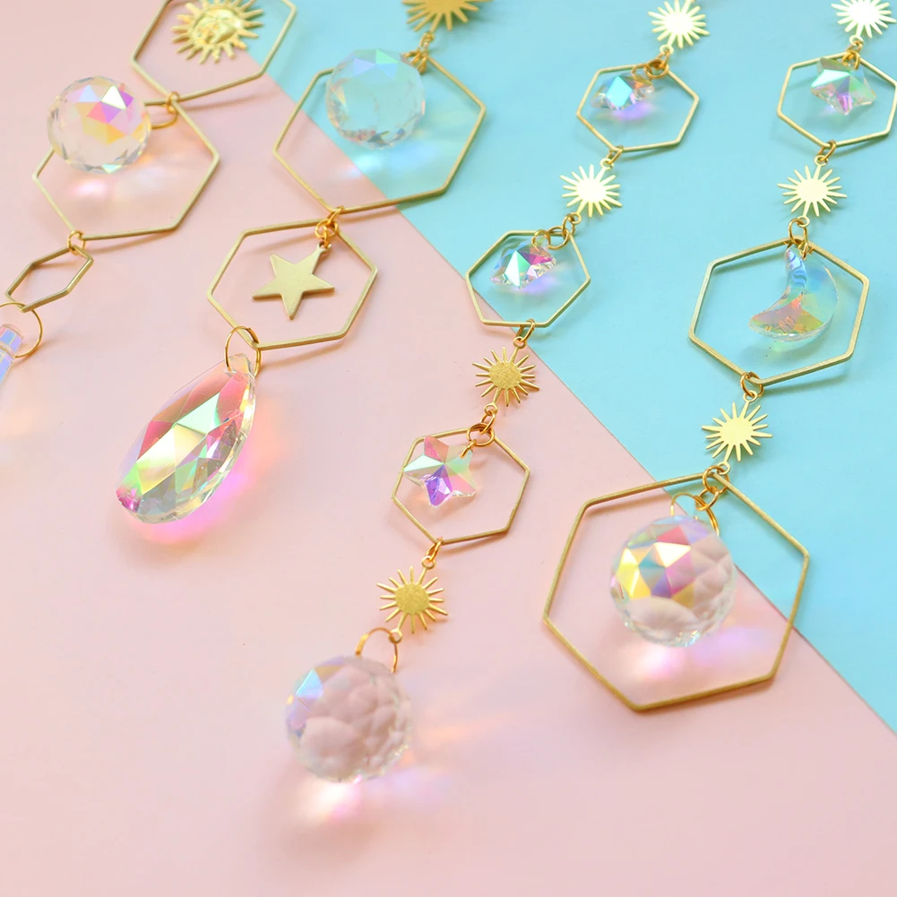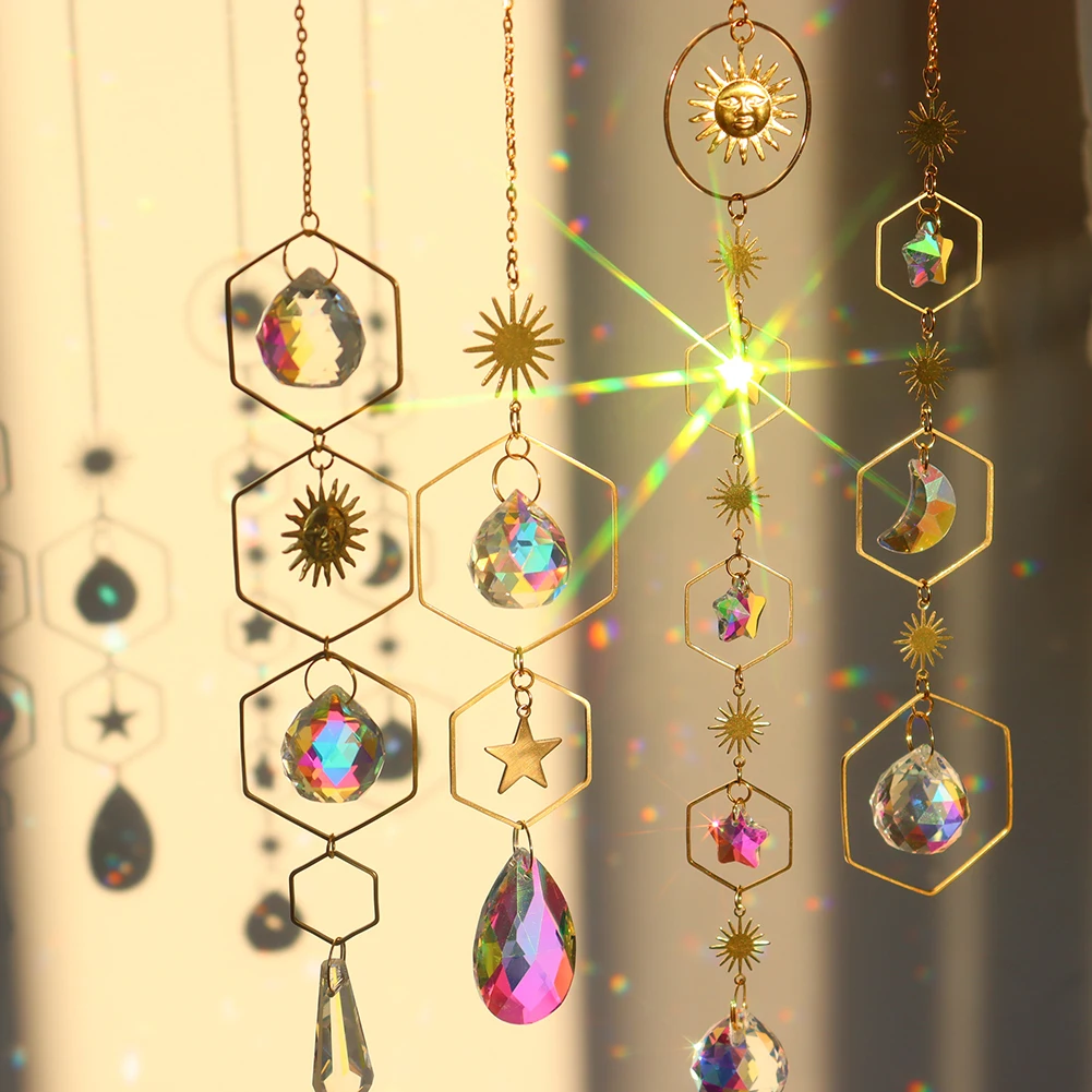 Хрустальный ветряной колокольчик, подвеска Янтарная звезда, луна, солнце, Ловец снов, радуга, подвесная капля для улицы, ветрянки, Садовые принадлежности