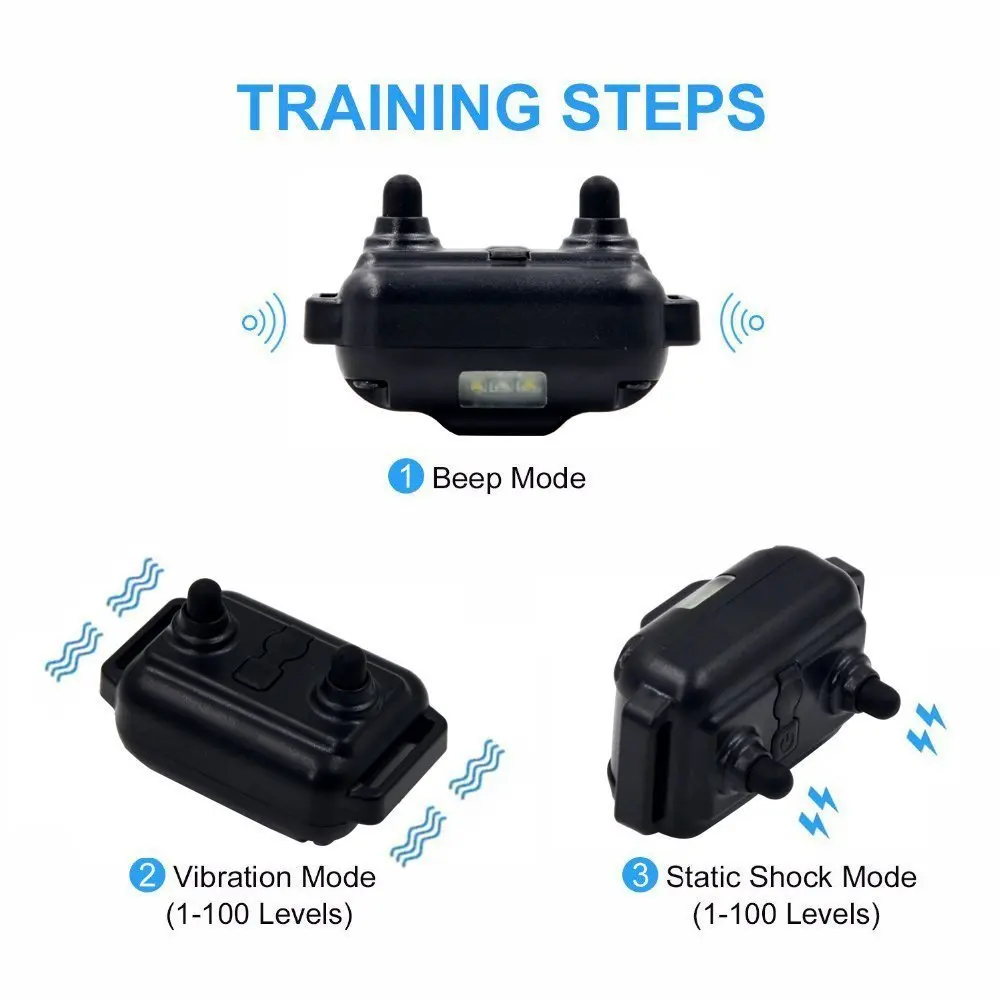 Этот полностью водонепроницаемый электронный ошейник очень популярен среди собак и владельцев домашних животных. Его системы обучения помогут вам контролировать и обучать свою собаку в эффективном диапазоне с помощью серии функций, включая вибрационное оповещение, режим шока и звукового сигнала и т. д. Благодаря удаленному дизайну вы можете удаленно останавливаться, бегать по коррекции, легко перезвонить, кусать и бороться. Это будет ваш хороший помощник для обучения. Подходящая собака: большая собака, собака среднего размера, маленькая собака