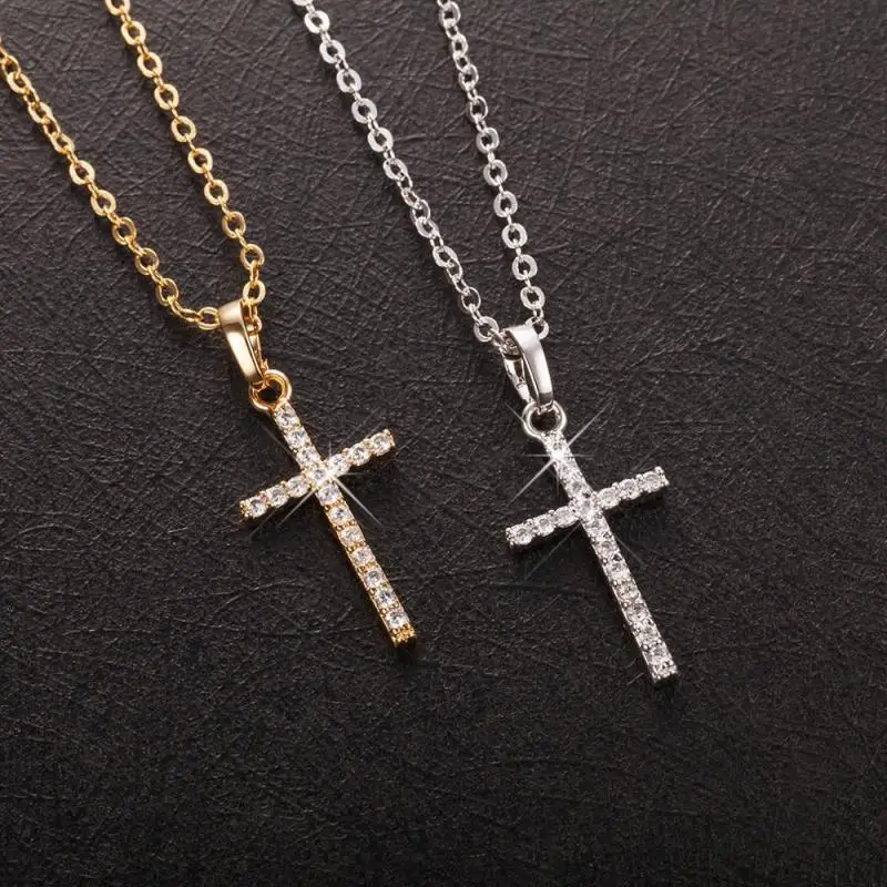 Модное простое циркониевое крестообразное искусственное ювелирное изделие, подарочное ожерелье для женщин
