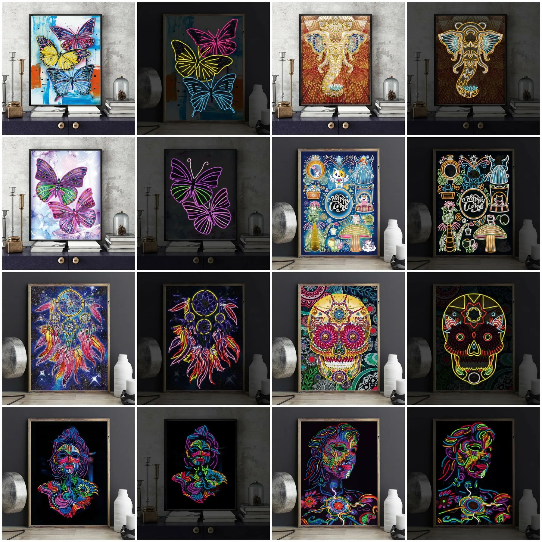 HUACAN 5D DIY светящаяся Алмазная картина Картина Стразы Алмазная вышивка бабочка вышивка крестиком украшение для дома