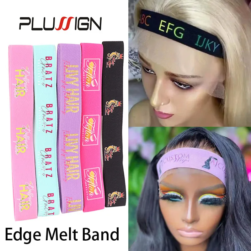 Пользовательский логотип, 10 шт./лот, лента для парика для укладки краев шнурка, лента для волос, расплавленная лента, черный, розовый, лента для плавления шнурка с регулируемой волшебной наклейкой