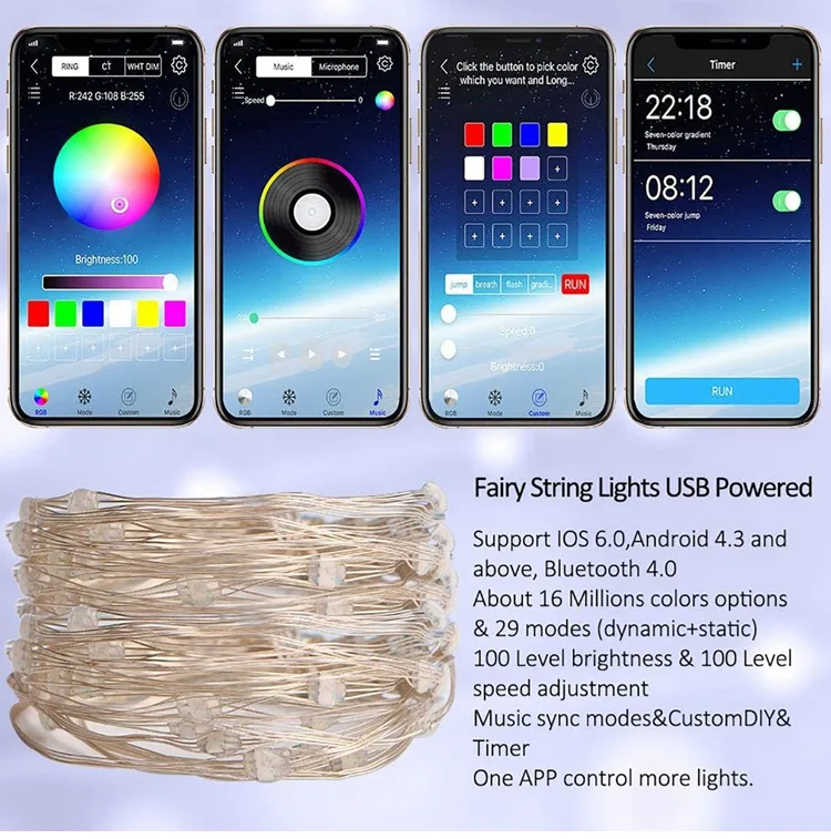 Цветная гирлянда RGB с Bluetooth, сказосветильник гирлянда, украшение для рождественской елки, Рождественская гирлянда, новогоднее праздничное освещение для дома
