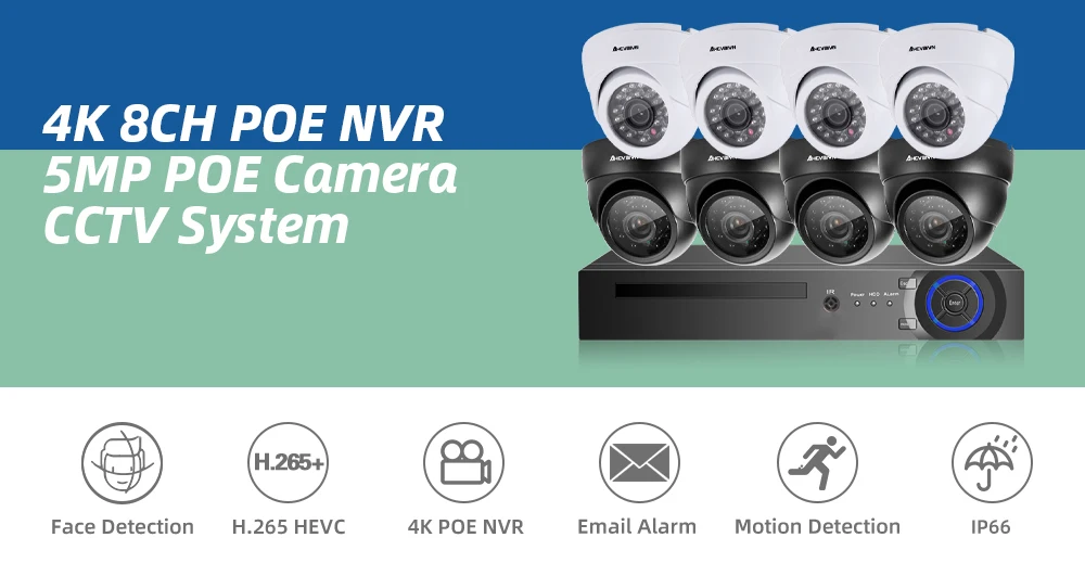 1. Ультра HD 4K дисплей высокой четкости, NVR может поддерживать 8 МП и 4K max, вы можете подключить 720p,1080p,3mp,4mp ,5mp, камеры 8mp & 4k с нашим POE NVR;2. Ультра HD 5MP POE ip-камера, металлический материал, IP66 водонепроницаемый, подходит для внутреннего и наружного использования, надежная Домашняя безопасность;3. Наш NVR и камера поддерживают распознавание лица, воспроизведение лица, обеспечивает ультра высокое разрешение видео наблюдения, обеспечивая максимальную детализацию и четкость доступны;4. Наш NVR и камеры поддерживают расширенное H.265 Сжатие видео, питание через Ethernet, подключи и работай, прост в использовании;5. Поддержка режима ночного видения Ultra HD;6. Поддержка обнаружения движения, оповещения по электронной почте, воспроизведения видео и многоязычности;7. Поддержка Android,Iphone,Ipad,PC,VMS,P2P view;8. Удаленный доступ в любом месте, в любое время;